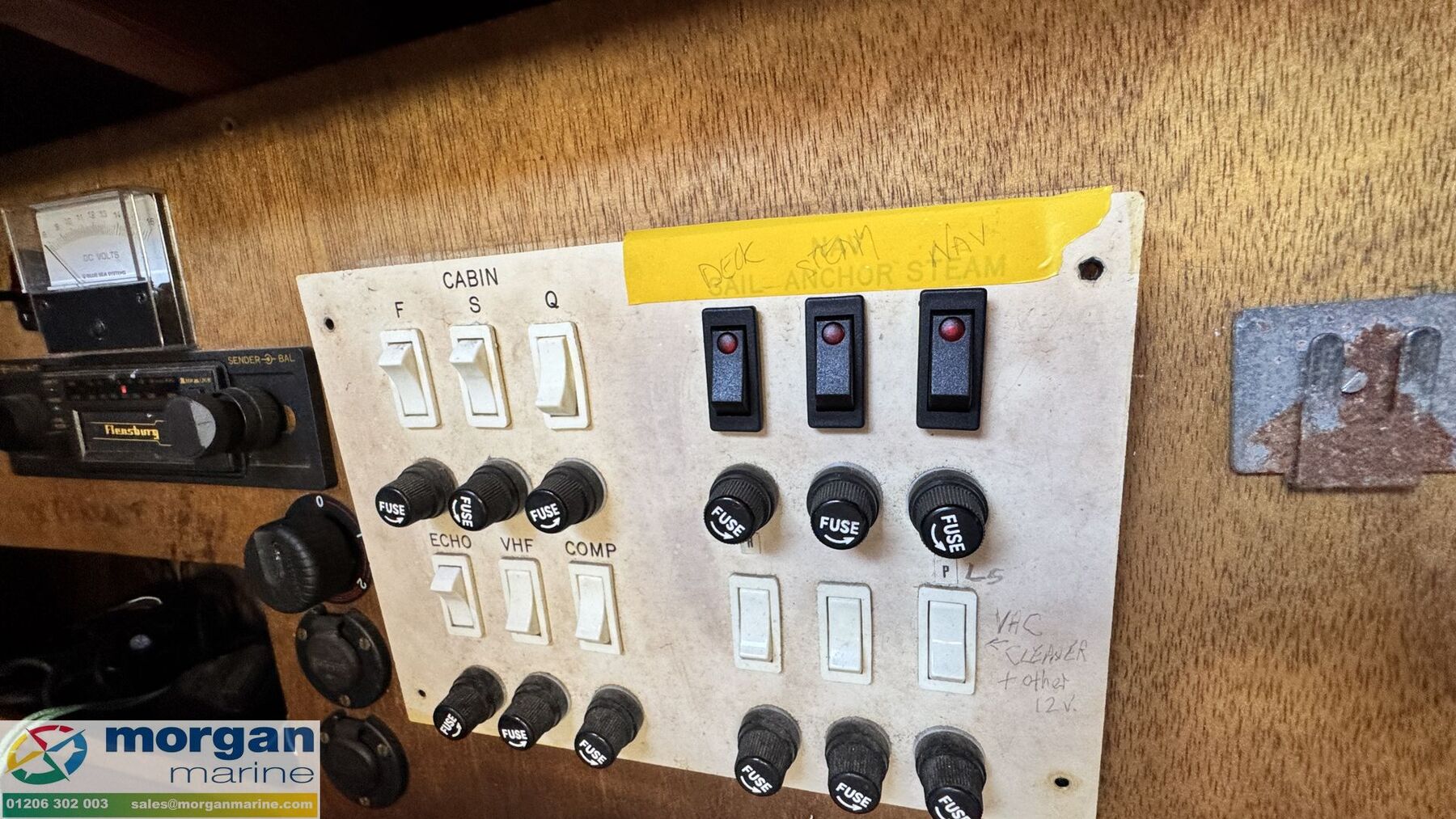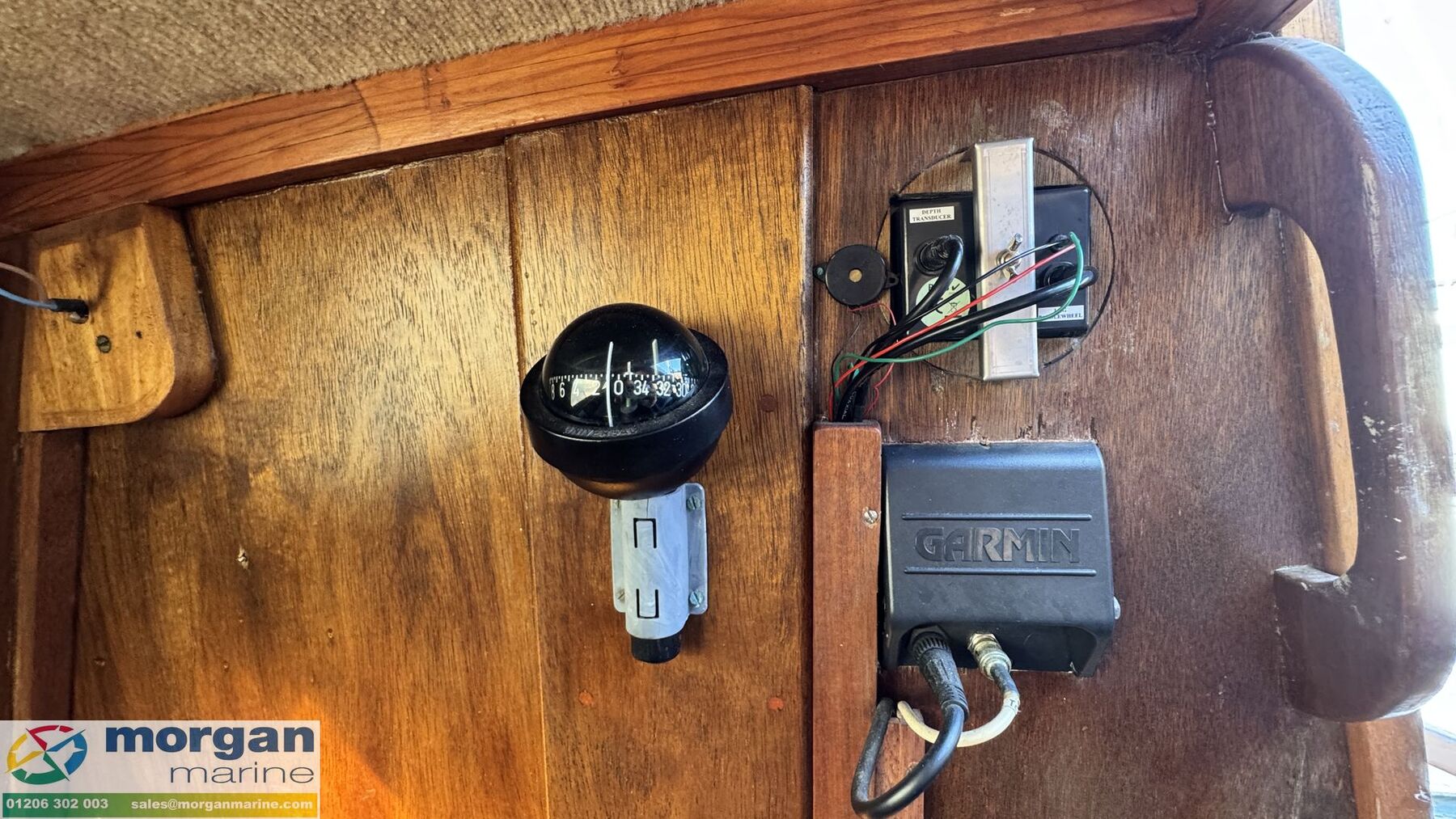 Electronics: Garmin GPS 128. Clipper Duet digital display. Navico RT 6500S VHF radio. Compass. Battery switch. Cabin lights. Anchor light. Navigation lights. Bilge pump.