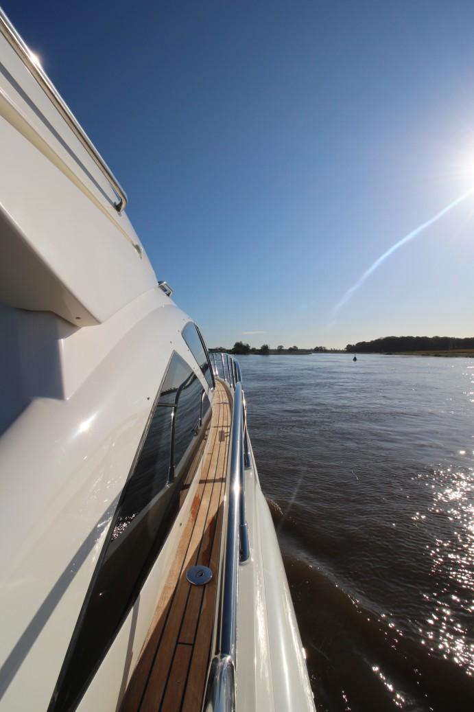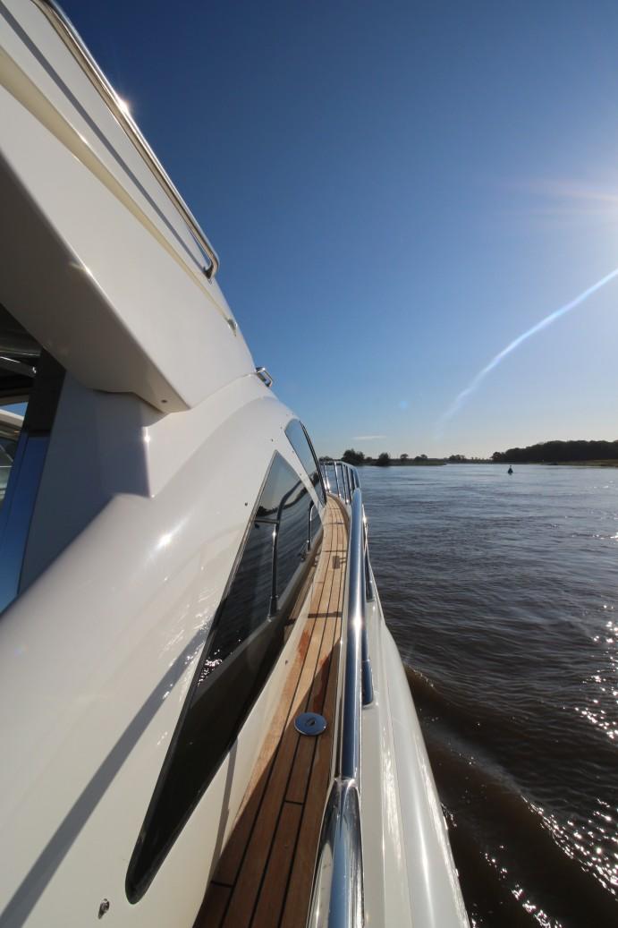 Thanks to the Volvo Penta IPS system, the yacht benefits from superior maneuverability, with joystick controls for easy docking and close-quarters navigation. The integrated Dynamic Positioning System (DPS) allows for station-keeping, an invaluable feature when holding position is critical, such as waiting for a berth or anchoring in deeper waters.