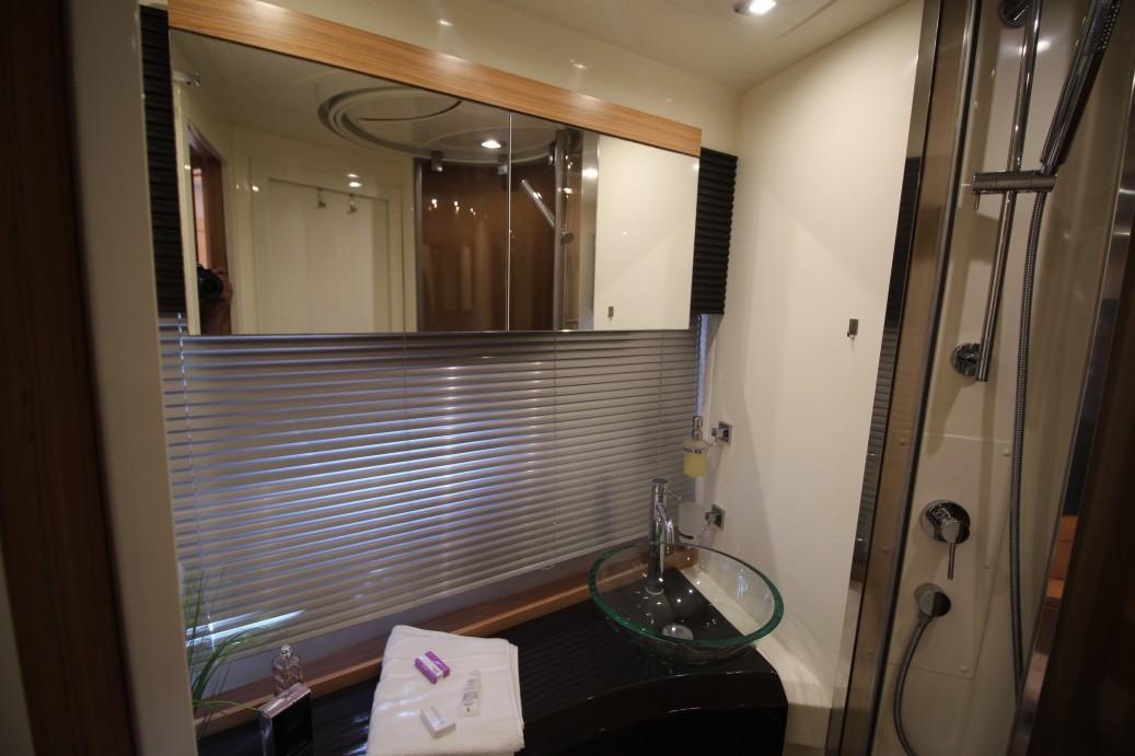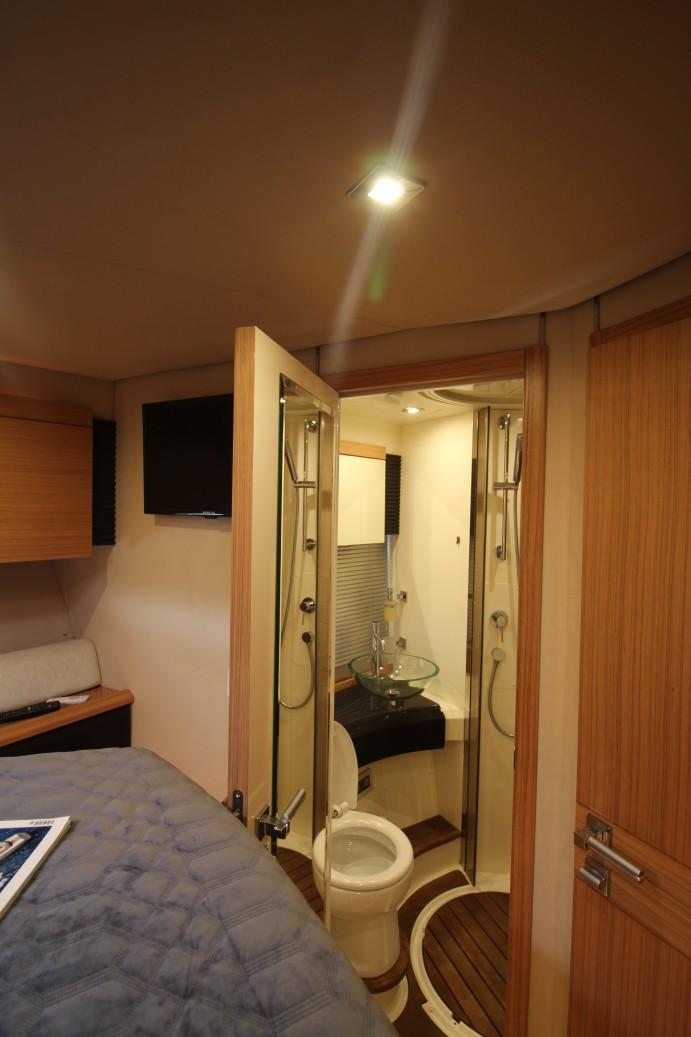 The 2-cabin version of the Atlantis 50x4 emphasizes spaciousness and versatility. With two beautifully appointed cabins, this configuration prioritizes comfort for the owner and guests, making it ideal for small groups or family outings. The master stateroom is a true highlight, offering a full-beam layout with a large ensuite bathroom, large windows for natural light, and premium materials throughout. The guest cabin, also generously proportioned, includes its own ensuite bathroom, ensuring the utmost privacy and luxury for all on board.