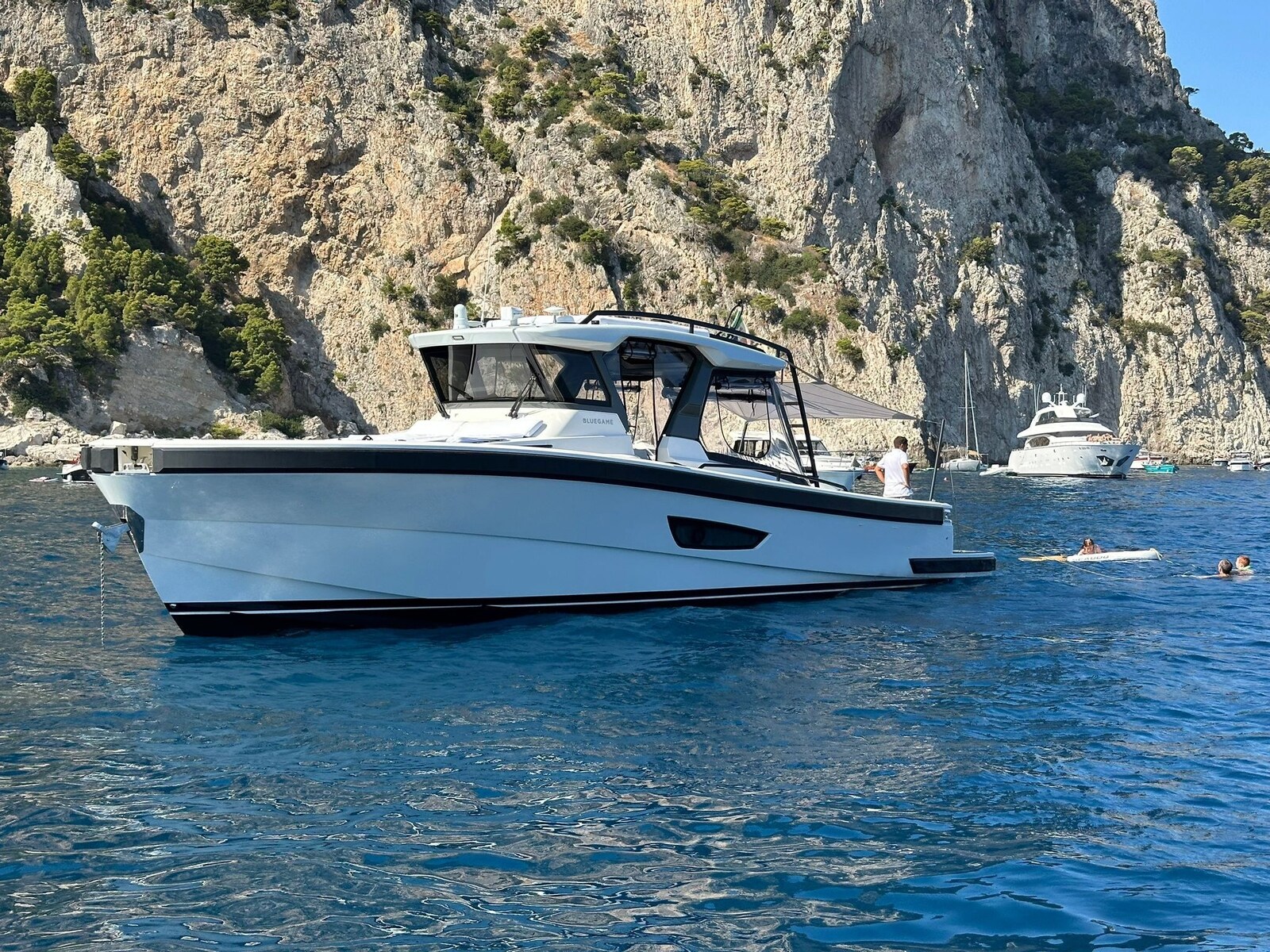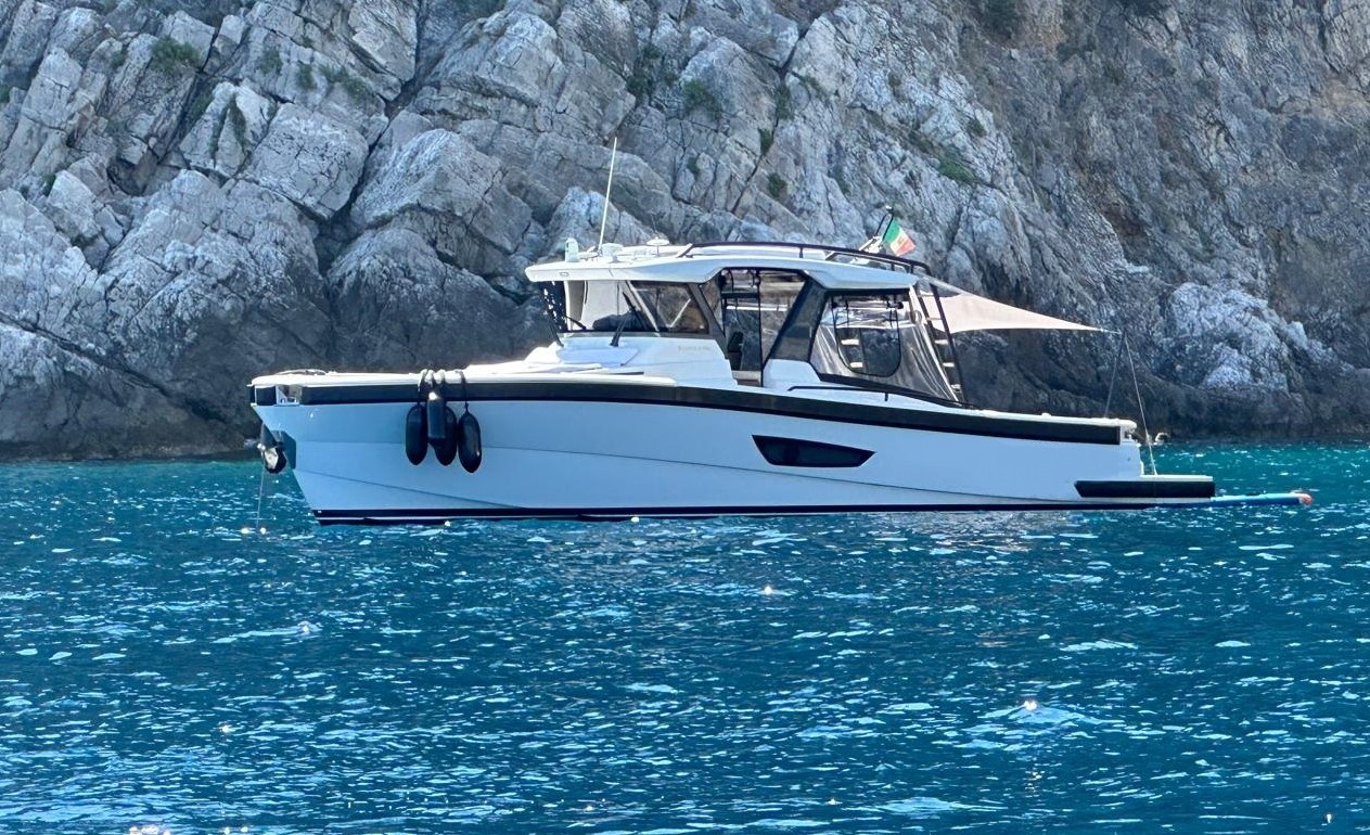 Kein Spaziergang, kein offenes, kein Daycruiser oder ein Verfolgungsboot. Der Bluegame 42 ist all das zusammen. An Bord müssen keine Kompromisse mehr zwischen Leistung und maximalem Komfort eingegangen werden. Ein avantgardistisches Design für ein elegantes Motorboot, das einzigartige Empfindungen auf See bietet. Die BG 42 ist dank des zentralen Kontrollstandes und der Rückfahrscheibe mit einem großen Cockpit ausgestattet, das durch hohe Kanten geschützt ist, um einen sicheren Betrieb auf offener See zu gewährleisten, und einer breiten Sicht bei Manövern. Mit einer intelligenten Optimierung von Licht und Raum ist die Bewohnbarkeit des Unterdecks einem Boot gleicher Länge überlegen. Die Eignerkabine verfügt über ein Kingsize-Doppelbett und der Essbereich im Bug kann in ein Doppelbett umgewandelt werden, um Platz für bis zu sechs Personen zu bieten. Diese BG 42 befindet sich in einem neuwertigen Zustand. Ein Muss. Kontaktieren Sie uns für alle Details.