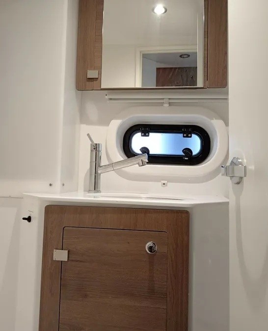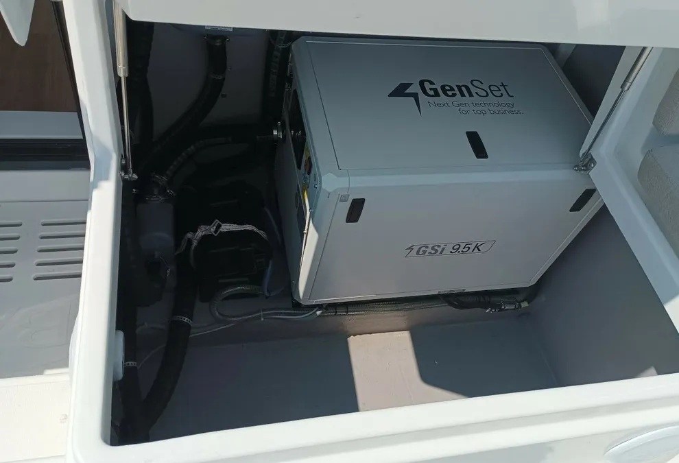 L'equipaggiamento della barca comprende una classica randa, un generatore, un bimini e un plotter GPS esterno. Inoltre, la barca dispone di riscaldamento, aria condizionata, impianto audio, altoparlanti esterni e altoparlanti interni. La cucina completamente attrezzata comprende frigorifero, forno, fornello, lavandino e utensili da cucina.
