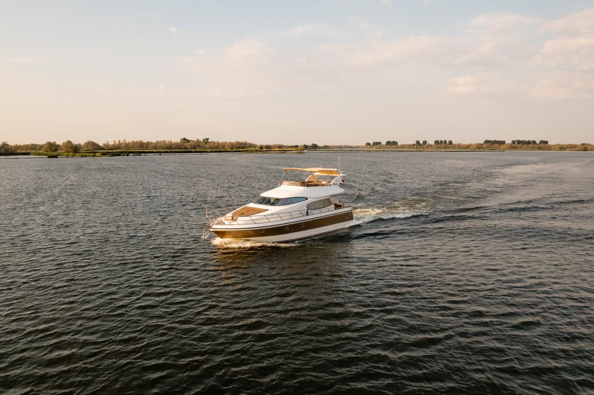 Regarding performance, this Elegance 54 has two latest edition MAN R6-800 engines, chosen in order not to disappoint clients' expectations for this type of super yacht. It is possible to reach a cruising speed of 27 knots, while maximum speed is 29 knots.