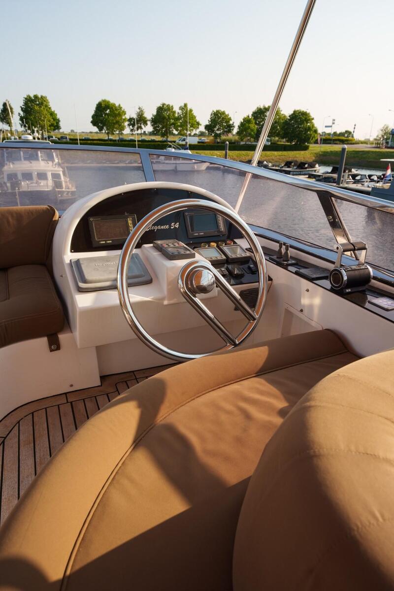With this model, Elegance Yachts has made its official debut in the luxury superyacht sector. It was designed for those who wish to cruise in top-of-the-range style, without forsaking that feeling of intimacy typical of Elegance's yachts. The 54 was designed to maintain the House characteristics, and it has superb, dynamic and sophisticated lines. The exceptional design work performed by the Elegance Engineering is particularly obvious on the flybridge, which represents a combination of styling and spacious luxury. It is an invitation to enjoy sun and sea in conditions of total relaxation. Everything is incredibly detailed, exclusive and comfortable, such as curved seats, the cocktail bar, the settees and the sundeck.