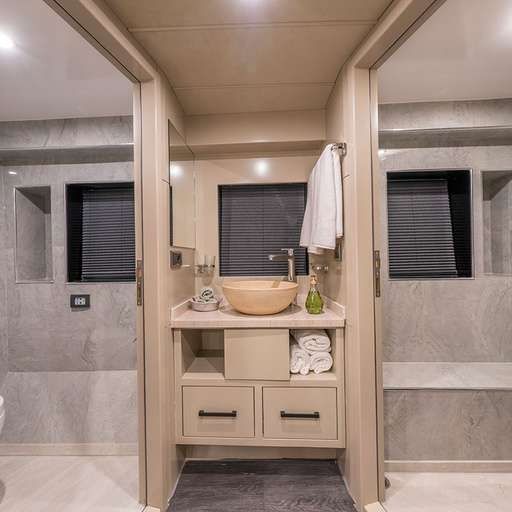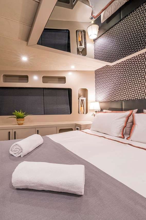 Parfaitement adapté à une activité charter, il offre des volumes généreux, une circulation fluide entre les espaces et des équipements complets répondant aux attentes d’une exploitation professionnelle comme d’un usage privé.