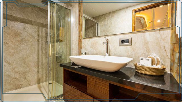 Son design privilégie les espaces de vie extérieurs, une circulation fluide entre les ponts et une atmosphère chaleureuse à bord, grâce à une boiserie soignée et des finitions de qualité.