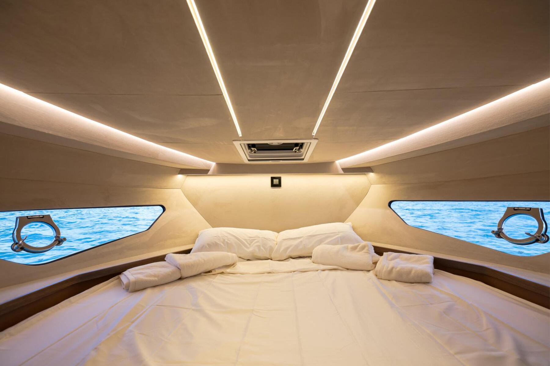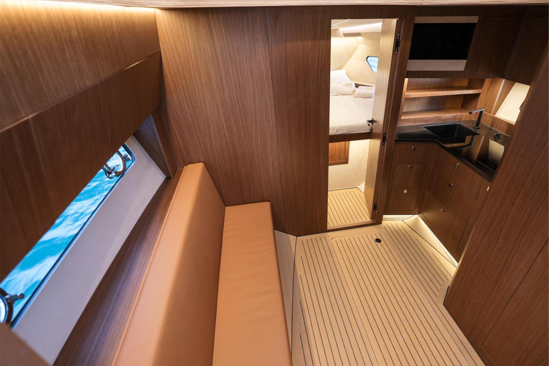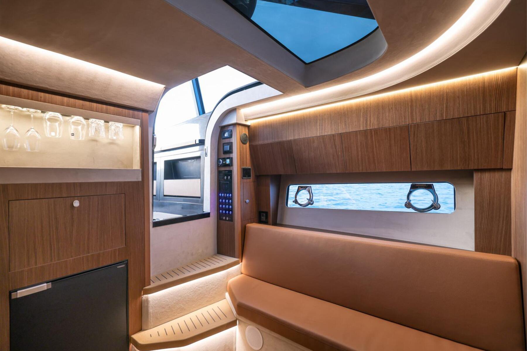 The Focus 3X is engineered to offer the best of both worlds: the openness of an open boat with the option for privacy. Key to this are the wide electric side windows, allowing for an instant transformation from an enclosed space to an open experience at a button's press.