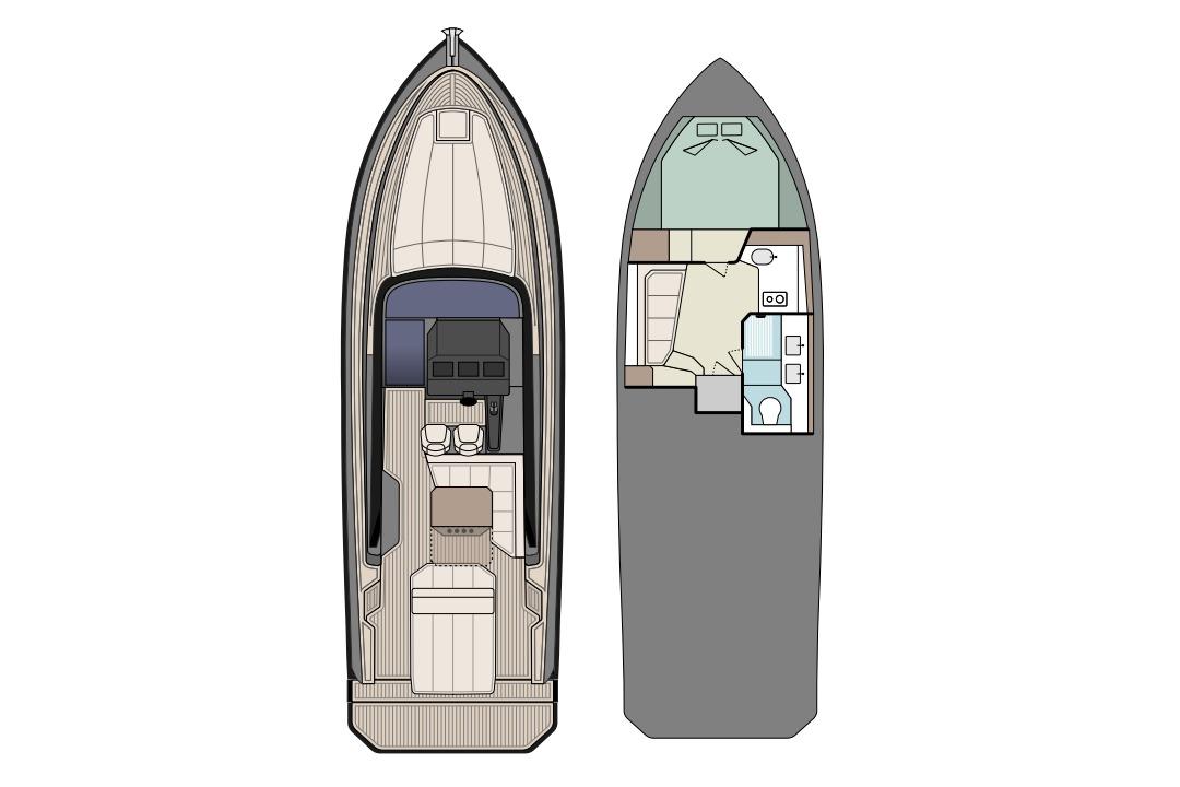 Custom color for the whole boat: hardtop, deck and hull (Awlgrip)