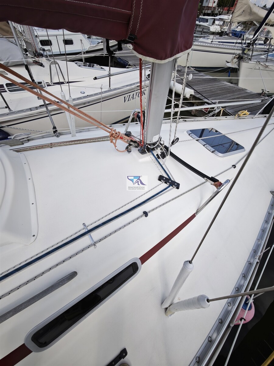 Sie ist komfortabel, komplett mit geöltem Teakholz ausgestattet, verfügt über beste Segeleigenschaften und war die erste Serienyacht mit einer Selbstwendefock.