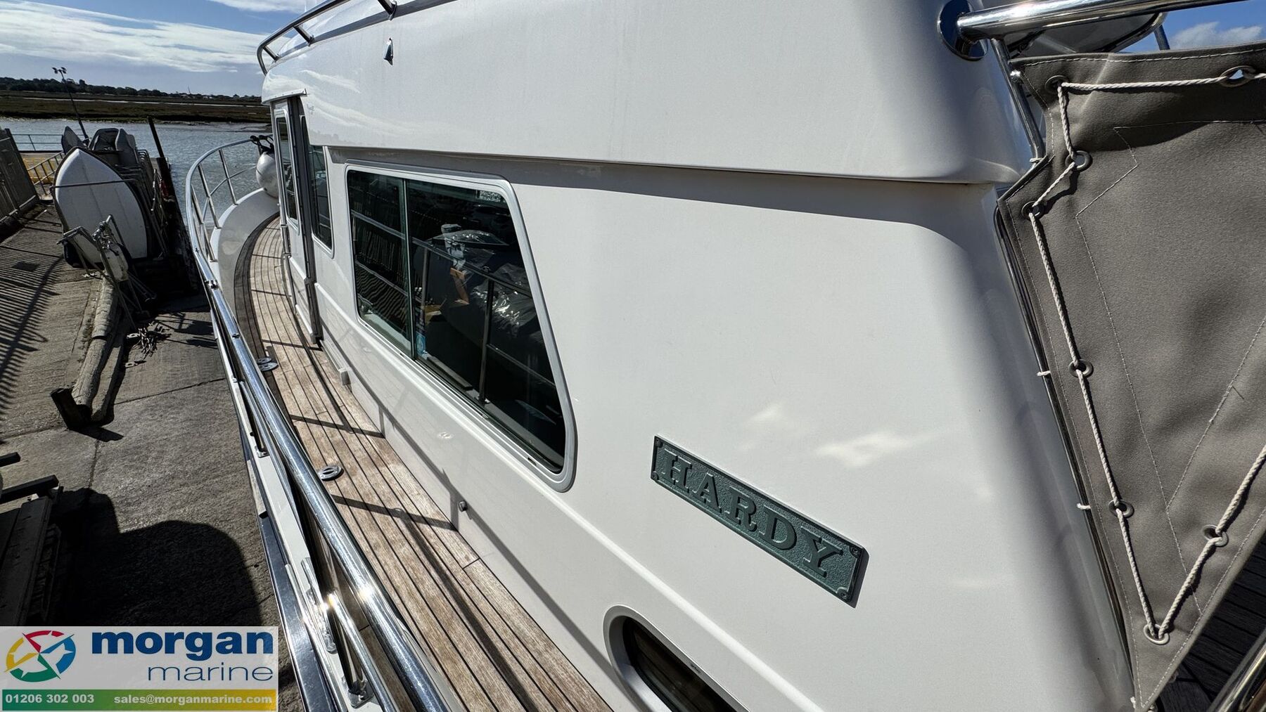 Just arrived at Morgan Marine, the 2003 Hardy Commodore 42 Flybridge is an exceptional example of a versatile and capable offshore cruiser. Powered by twin Yanmar 420hp 6LY2M STE inboard diesel engines on shaft drives, with the added benefit of a bow thruster, she offers both power and precision on the water. Presented in fantastic condition with a huge amount of upgrades and service history, Himalia combines striking looks with outstanding seakeeping ability, making her a true all-rounder. Step on board and you’ll find accommodation for five across three cabins, a spacious saloon with panoramic 360-degree views, and a fully equipped galley designed for comfort at sea. She comes loaded with premium features, including Raymarine autopilot, four modern Raymarine chart plotters, Raymarine VHFs, a fully serviceable generator, diesel heating, an electric windlass with helm and flybridge controls, a rear digital camera, and much more. With a cruising speed of 15–20 knots and the ability to reach up to 25 knots, this boat delivers performance to match her style, cutting effortlessly through the waves. Backed by a solid service history and complete title paperwork, Himalia is a rare opportunity that won’t stay on the market for long. Early viewing is strongly recommended - Contact Morgan Marine today to arrange yours.