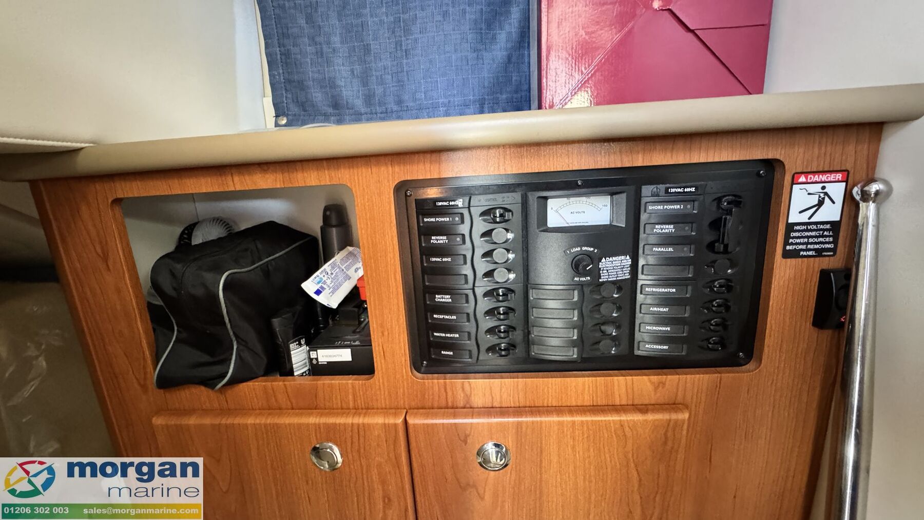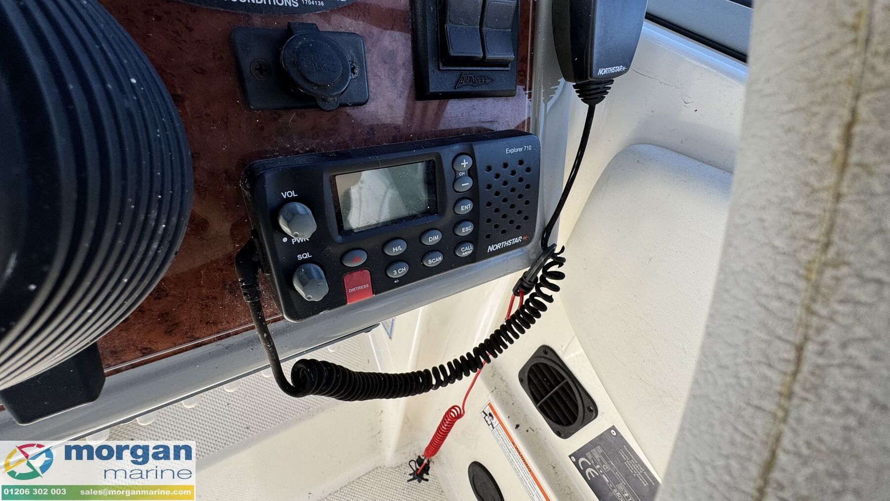 Electronics: Raymarine Dragonfly 7 Pro chart plotter. NorthStar VHF explorer 710. Navigation lights. Jenson C/D player with control at helm. Faria depth gauge. Shore power with inverter and battery charger. Anchor light. Manual and automatic bilge pump. Engine gauges ( fuel, temperature, oil pressure, voltage, rev, MPH, and trim). 2x Batteries. Remote spotlight. Control switch panel. Horn. Immersion heater. USB socket.