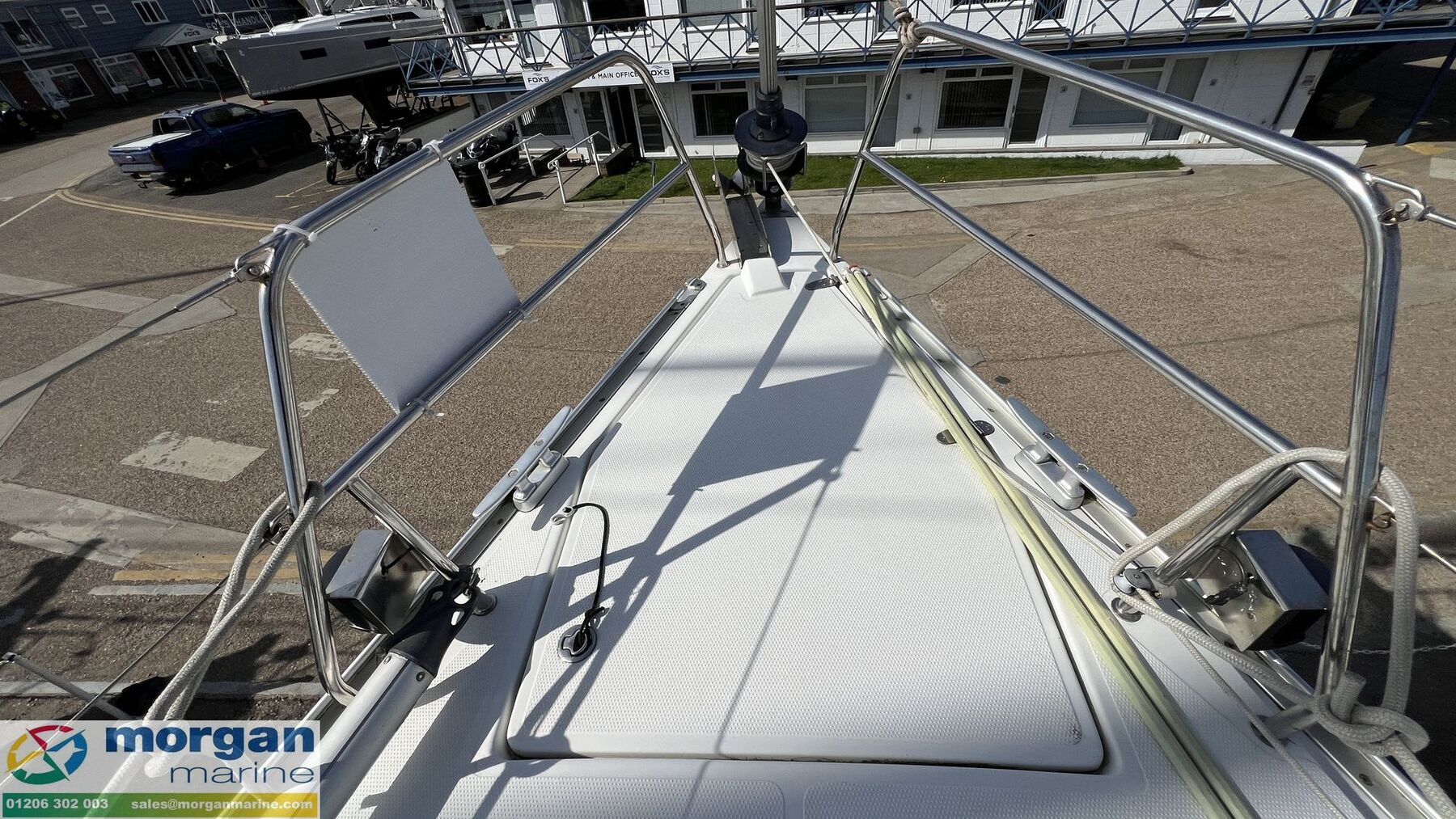 Deck: GRP hull. Fin keel - performance composite iron lead keel. Stainless Steel keel bolts. Fenders and lines. Bow fender. Seago 4 person life raft. Original standing rigging with regular inspection. Running rigging updated on a as needed basis. Full cockpit enclosure (2023). Main sail with cover (2017). Self tacking jib. 2x electric winches. 130 percent Genoa. Spinnaker and snuffer pole. Steps to mast. Bimini frame with cover. Stainless Steel wire guard rails. Pushpit and pulpit. Anchor locker with electric windlass, anchor, chain and rope. Bow roller. Stainless Steel mooring cleats. Spray hood. Boarding ladder. Deck handles. Life horseshoe ring. Teak decking on cockpit.