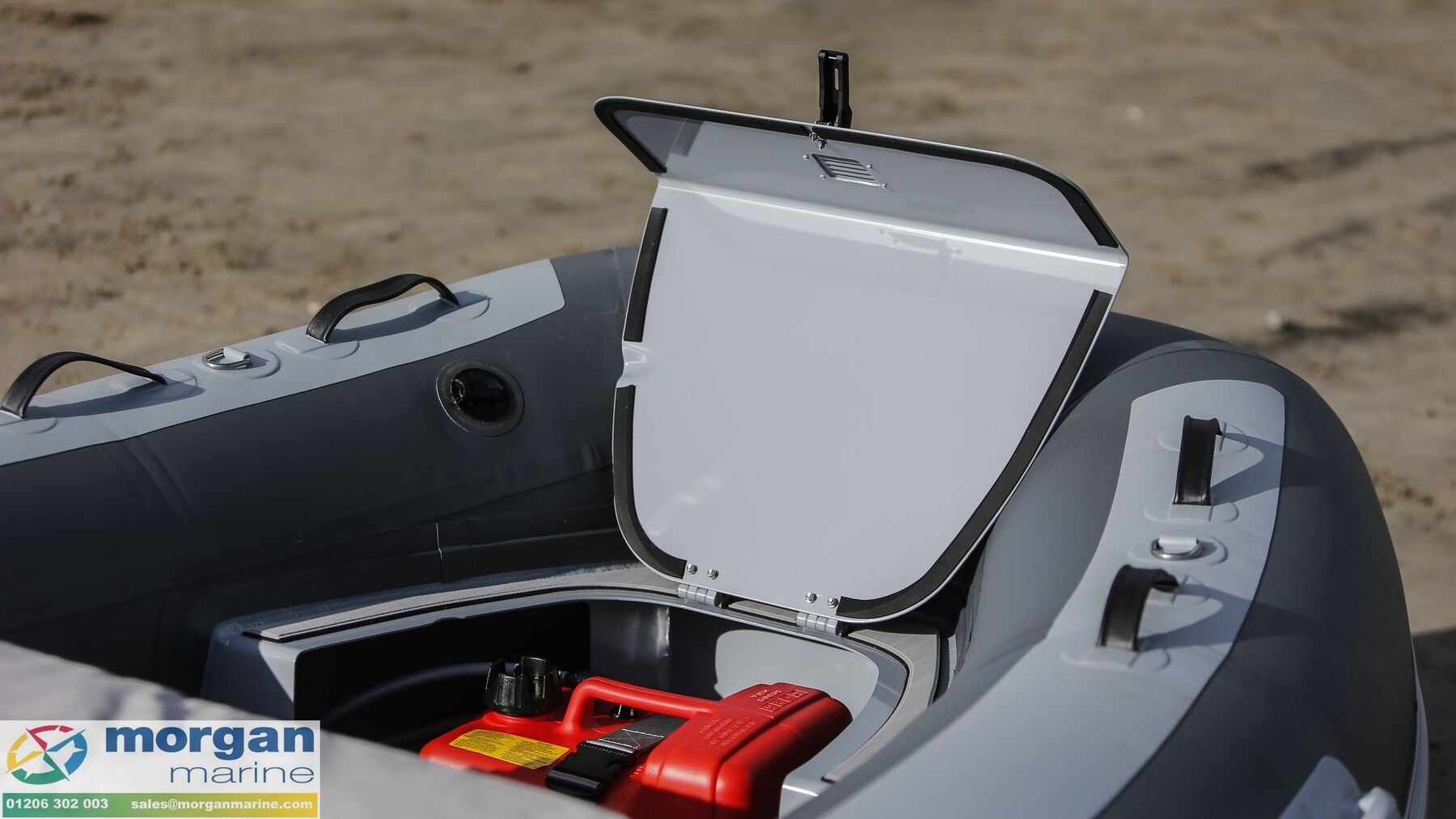 Deck: PVC tubes 44cm diameter. Self-draining deck. Welded seams. Flush mount non return valves. High tensile chromated & powder coated aluminium hull. Bow locker (Fit 24L fuel tank). Integrated transom supports. Removable seat. Lifting points and towing eyes. Tow bridle points. Brushed foam teak finish deck. Heavy duty rubbing strake and full length keel guard.