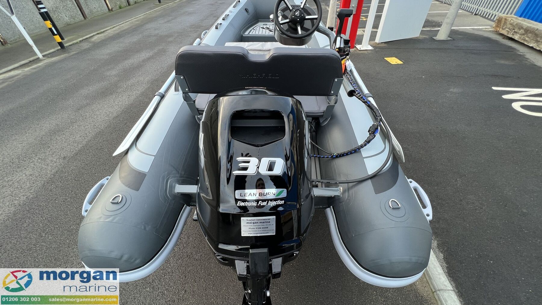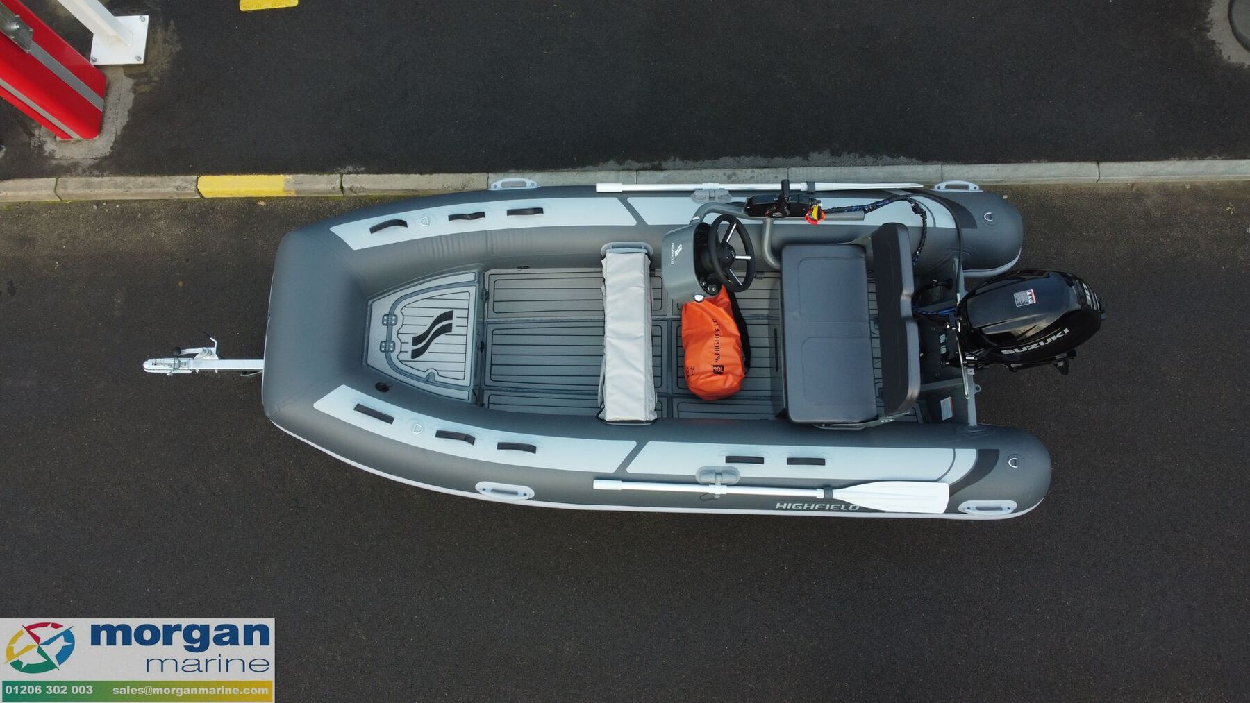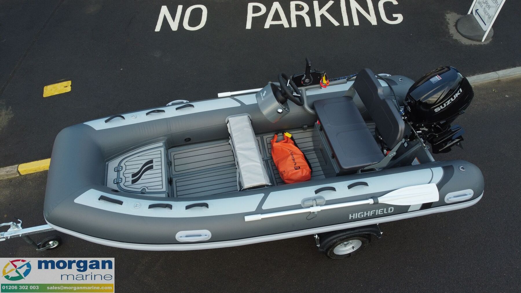 Highfield CL 380 in dark grey aluminium RIB with a brilliant speciation including FCT console, Electric bilge pump, Suzuki DF30 ATS with electric start and power tilt offering superb performance. Quite possibly the ultimate tender / run about with a durable aluminium hull coupled with full length keel guards make these ideal for those beach-hopping days with friends and family. This is a brilliant rib for all of the family offering plenty of seating, high equipment level and great performance. Offering seating for 6 people along with Console, Bow locker and self-draining deck. The hulls of the Classics are built of 2.5mm thick powder coated marine grade aluminium. Valmex PVC tubes - 1100 DTEX coated fabric. Including rigging and fit out with battery. Design category C. NB - library photos may not reflect specification of boat.