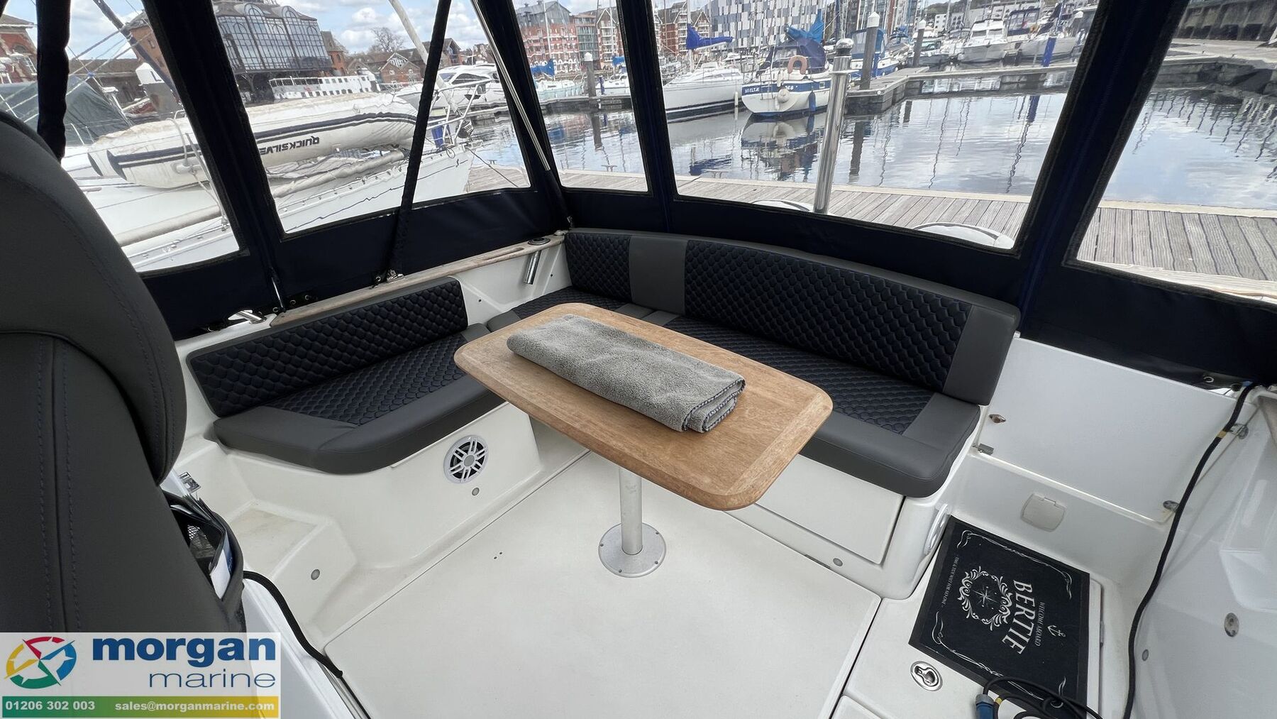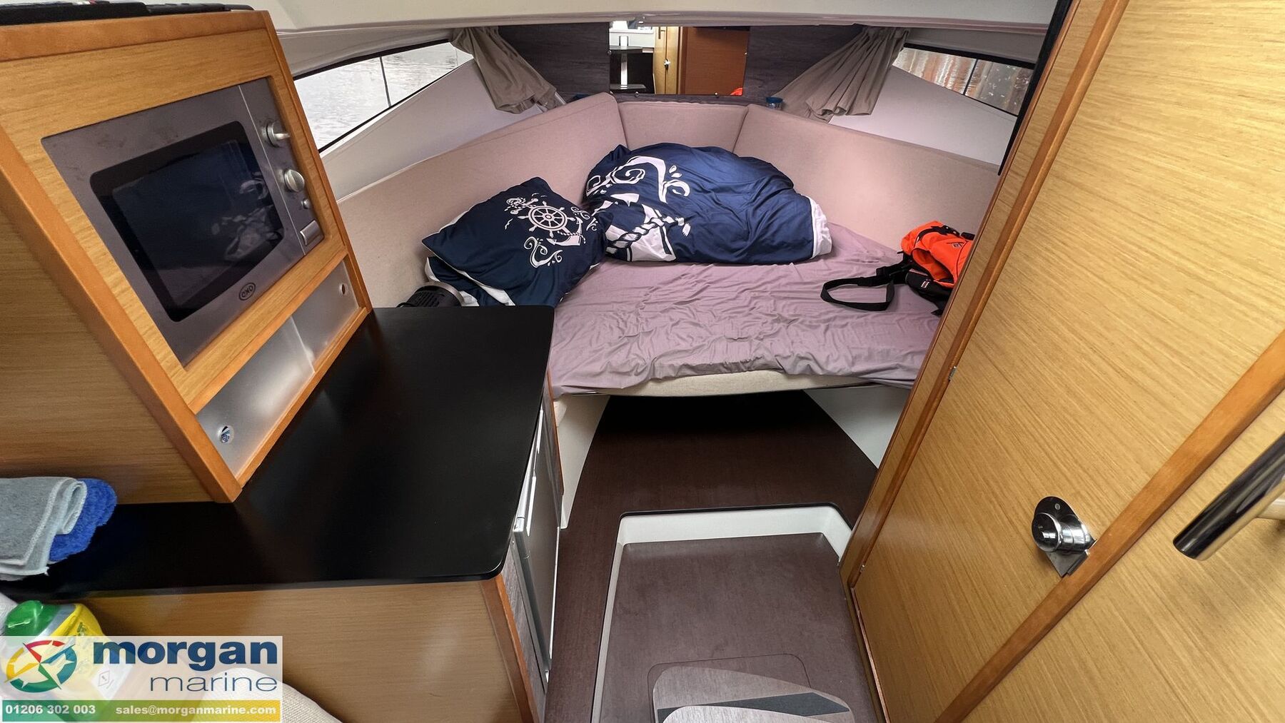 We are delighted to present this superb 2013 Jeanneau Cap Camarat 8.5 WA “Bertie”, newly arrived at Morgan Marine and benefitting from a comprehensive overhaul in 2025, making her a fantastic turnkey opportunity for the season ahead. This stylish and versatile walkaround cruiser has been exceptionally well maintained and thoughtfully upgraded, combining performance, comfort, and practicality. In 2025, “Bertie” underwent significant works including a full hull cut and polish, fresh antifouling, and a complete engine service. She also features a newly upholstered front sundeck mattress cushions, enhancing relaxation space on board. The enclosed canopy, with removable sides and roof sections, offers excellent flexibility whether you want full protection or open-air boating. The onboard electronics have been upgraded to a high standard, including a Garmin 1223 XSV chartplotter, Garmin VHF radio, and Garmin fish finder with depth gauge, all new in 2025. Entertainment is provided by a Fusion audio system with DAB and four speakers, complemented by upgraded LED lighting throughout the boat. Additional onboard convenience comes from 240V sockets with USB and USB-C charging ports. Below deck, the boat offers a comfortable forward 2-berth cuddy cabin with cushions and a double berth conversion, ideal for overnight stays. There is also a separate heads compartment fitted with an electric flush toilet and shower, providing excellent practicality for extended trips. Powered by twin Honda BF225 outboards, “Bertie” delivers strong, reliable performance, while the bow thruster ensures easy handling and manoeuvrability in marinas and tight spaces. Having had just two owners from new, and originally supplied by Morgan Marine, this boat presents in excellent condition and is ready for immediate enjoyment. This is a rare opportunity to acquire a well-specified and recently upgraded Cap Camarat 8.5 WA. Contact Morgan Marine today to arrange a viewing or to find out more.