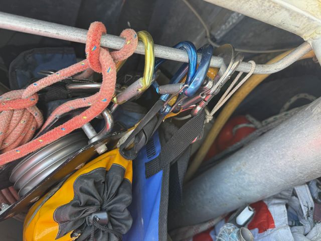 À prévoir : révision radeau de survie et balise EPIRB remplacement d’un panneau de pont fissuré