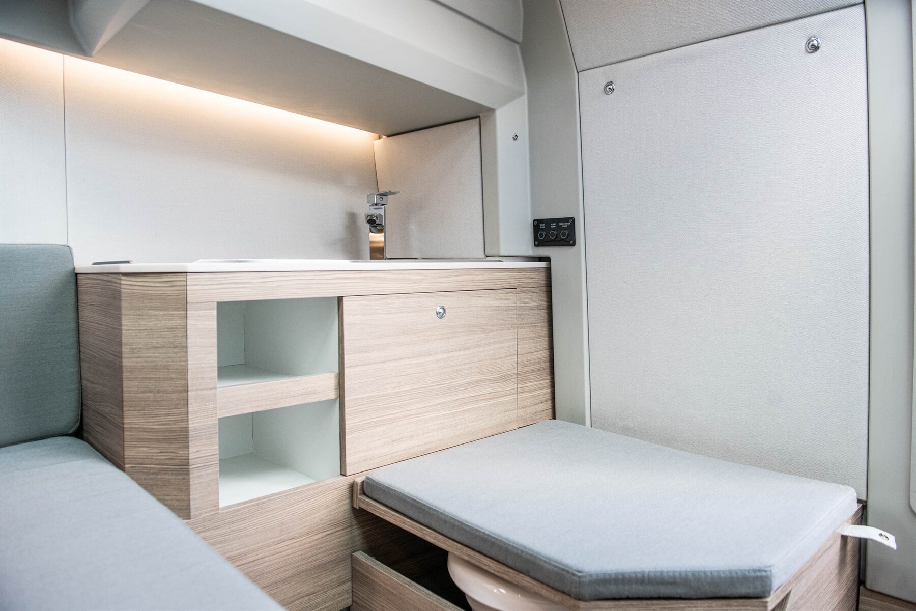 Le Saxdor 270 GTO a été conçu selon la philosophie Saxdor, avec une coque légère à double redan qui se comporte en douceur sur l’eau. Ce modèle offre les performances, la vitesse et l’efficacité énergétique qui ont fait la réputation des versions précédentes. La proue inversée avec une entrée en forme de V très profonde réduit l’impact avec les vagues, améliore la stabilité globale du bateau et rend la conduite plus agréable. La construction légère et robuste, réalisée avec la technique de l’infusion sous vide, vous permet d’avoir un bateau qui peut être facilement remorqué et simple à mettre à l’eau ou à récupérer. La 270 GTO est le choix idéal pour ceux qui aiment le soleil : grâce aux deux bains de soleil – un à l’avant et un à l’arrière – vous aurez amplement d’espace pour vous détendre. Le bain de soleil arrière, si nécessaire, peut être reconfiguré en une dînette confortable. Contactez-nous pour plus de détails