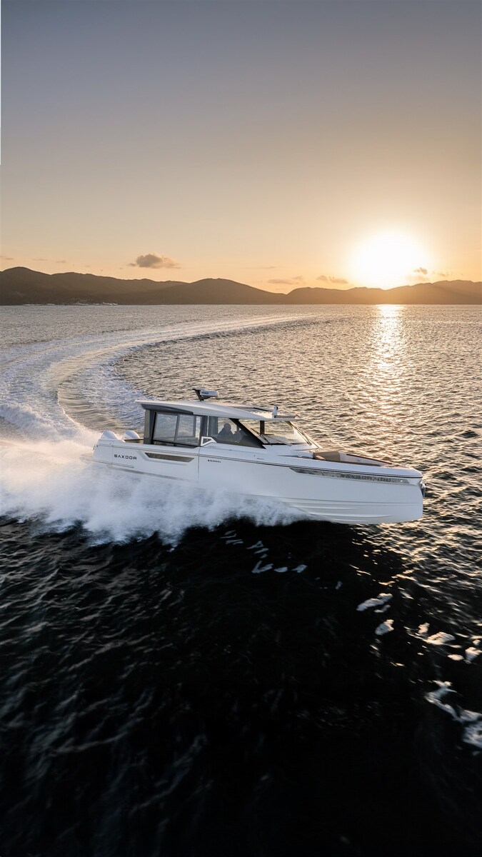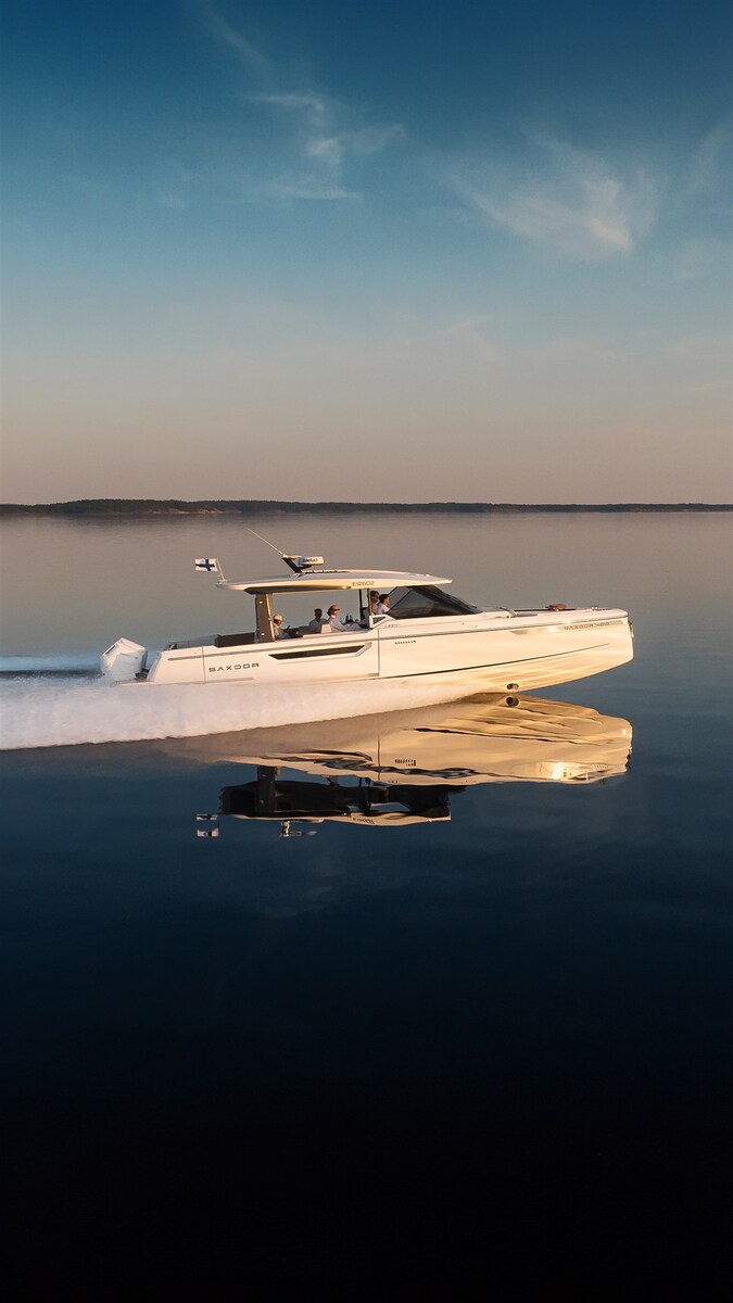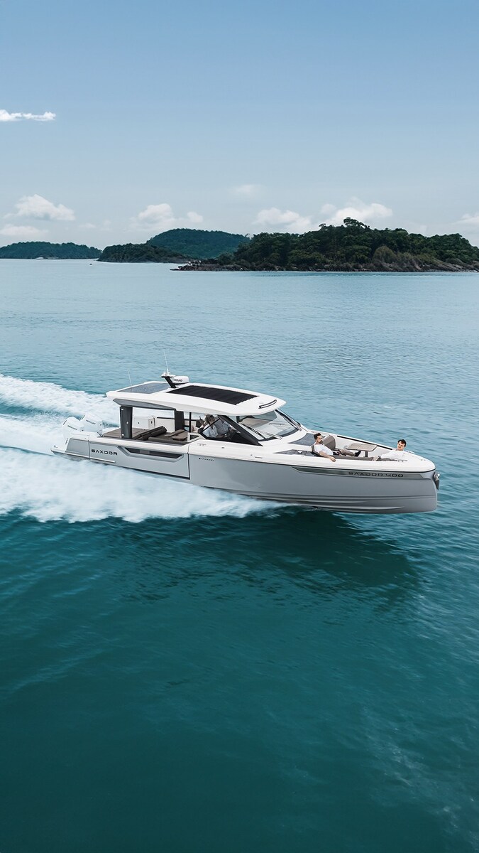 The Saxdor 400 GTO is designed to deliver exceptional performance and cruising efficiency. Built on a double-step hull and designed for twin outboard motors, this boat guarantees an exciting sailing experience. The full-width open wheelhouse maximizes interior space and allows direct access to the side terraces, creating a "private island" effect during stops. The lower deck accommodates a spacious double cabin forward, a separate bathroom, an option for a children's cabin and a double cabin amidships. Each room is finished with style and attention to design. Contact us for more information.