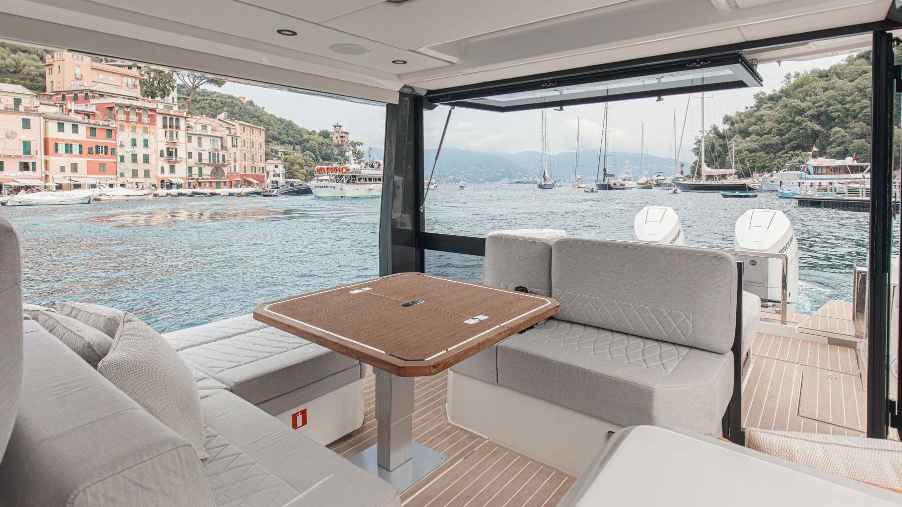 2 Engine Alarm, Bilge Alarm, Water pressure pump, Deck Shower, Electric Flaps, Hard top, Fire Extinguishing System, Courtesy Lights, Platform, 3 Automatic Bilge Pump, Entry door, Shorepower connector, Voltage Rectifier, Electric Windlass, swimming ladder, Horn.
