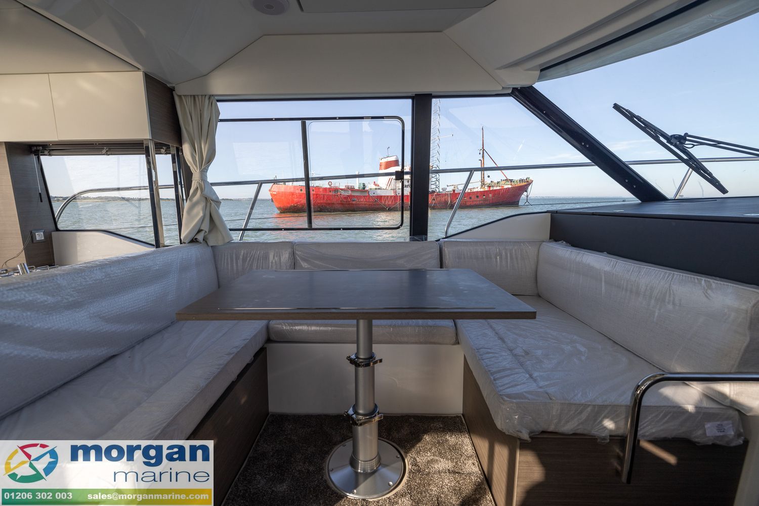 Jeanneau Merry Fisher 1295 Fly with triple Yamaha 300hp (white) - Steer By Wire and joystick - plus a saving of over £99,500 on the RRP. This boat has a fantastic specification - bursting with over £82,000 extras including Trim Level Premiere, aft closing canopy, bow thruster Garmin electronics, carpets, inverter and diesel heating - making one of the best best specified Merry Fisher 1295s. A fantastic wheelhouse fisher / cruiser with flybridge - great for day trips and overnight stays with 3 cabins (6 berths), galley (with electric stove + oven and pressurised hot water) and two toilet / shower compartments. Plenty of space onboard either in the large wheelhouse, the aft cockpit saloon, the bow sunpad or the flybridge with second helm position and full engine controls. Prepared + antifouled and complete with Morgan Marine handover. CE category B for 10 and C for 12. This 2024 model year Jeanneau Merry Fisher 1295 Fly is in stock at Morgan Marine and available for viewing 7 days a week. NB - library photos may not reflect specification of boat.