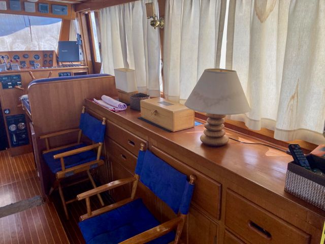 An iconic trawler by Kong & Halversen, the Island Gypsy 44 combines strength, elegance, and long-range autonomy. Built in solid fiberglass, it offers remarkable comfort at sea and spacious living areas, ideal for extended cruising.