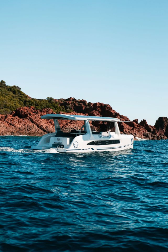 Le Millikan M.10 est un catamaran 100 % électrique, propulsé par l’énergie solaire, conçu et assemblé en France par Millikan Boats.