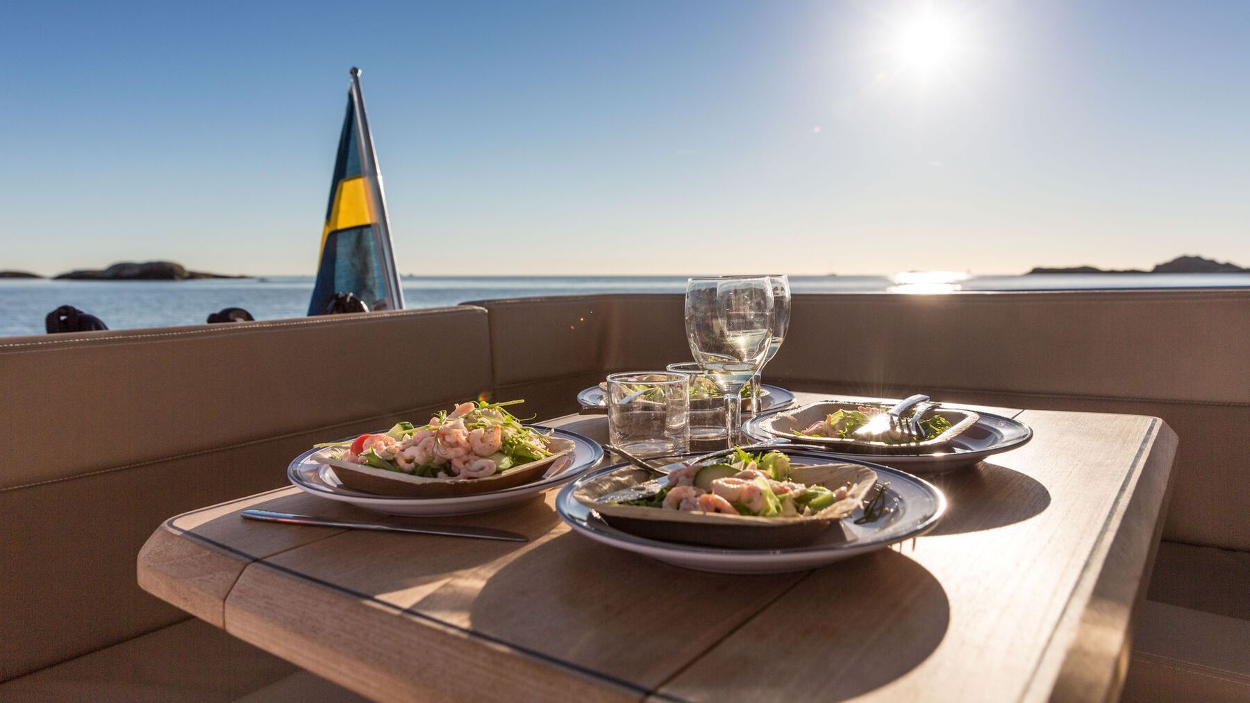 Cabin: Inside, the boat features warm mahogany panelling and grey upholstery for a timeless, welcoming feel. The front cabin boasts an exclusive coil mattress and extra topper for a luxurious night’s sleep, with additional mattress toppers in the port and starboard guest cabins for enhanced comfort. The saloon includes a convertible bed arrangement, and the cabin is illuminated by LED lighting throughout. The Nimbus exclusive dinner set (for 6) adds a premium touch to onboard dining. Toilet and shower room on port side. Additional toilet on starboard side - both electric flush.