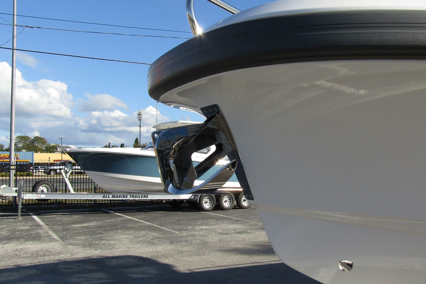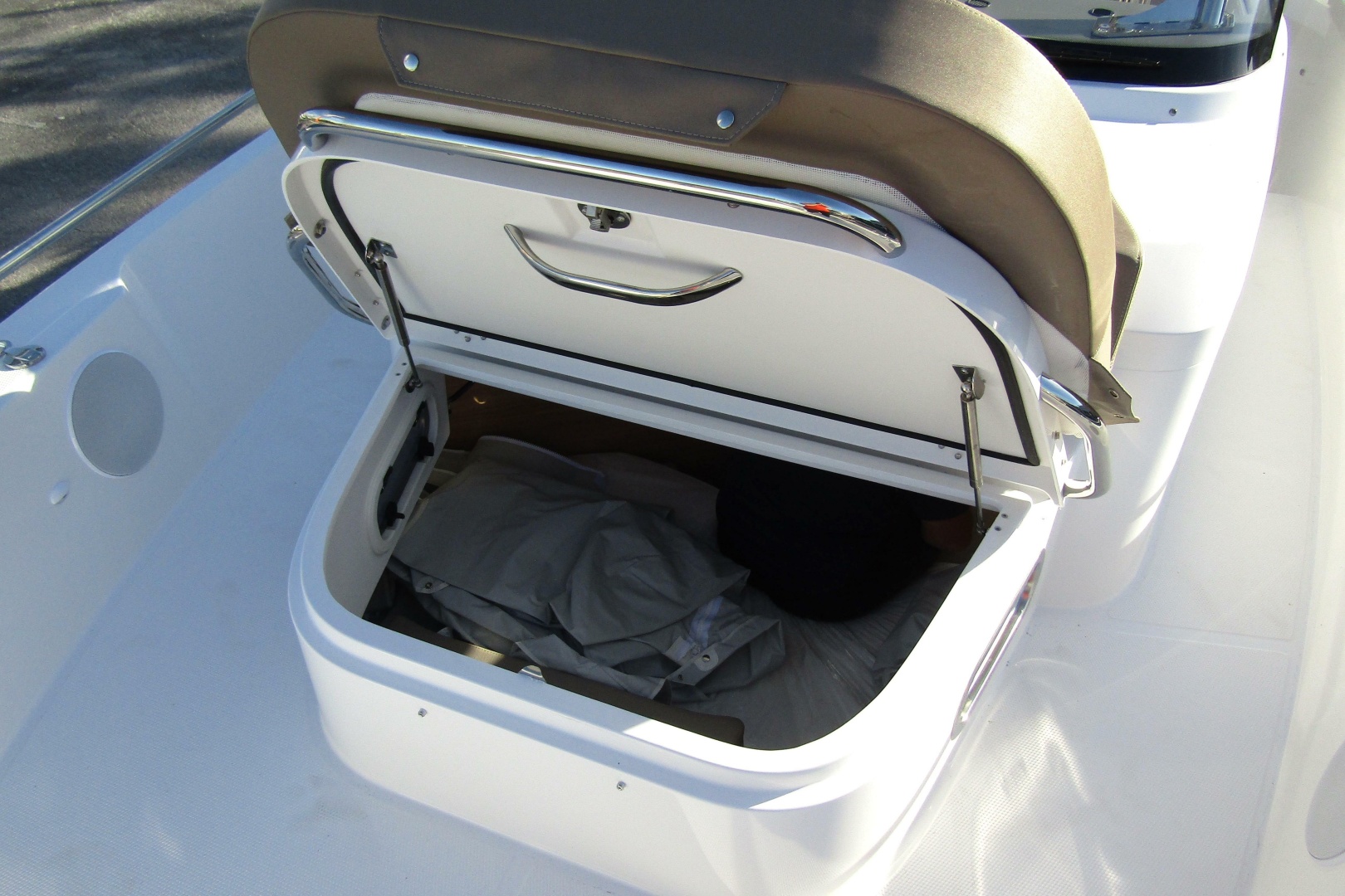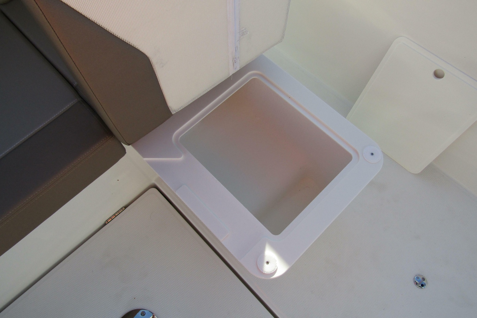The T9 is equipped with single or twin Mercury outboard engines. The aft deck u-sofa with seating for 5 easily converts to a sunbed. There is an option for a wet bar with a hand basin and portable Weber LPG grill behind the helm seat. The module also functions as support while on the water or in port. The boat is available with three different canopy solutions – harbor cover, spray hood, or as a T-top design. The helm can be equipped with single 9″, 12″, 16″, or twin 12″ chart plotters. The foredeck features a large loading hatch with access to the cabin as well as an optional daybed which creates an extra seating area that seats 4 people with a table or extended sunbed. One smart way to make the most of the aft deck area is spare railing cushions that can be placed on the railing, offering both extra seating and a cozier atmosphere. Below deck is a large berth for two with integrated ventilation, ample stowage and separate head with sink.
