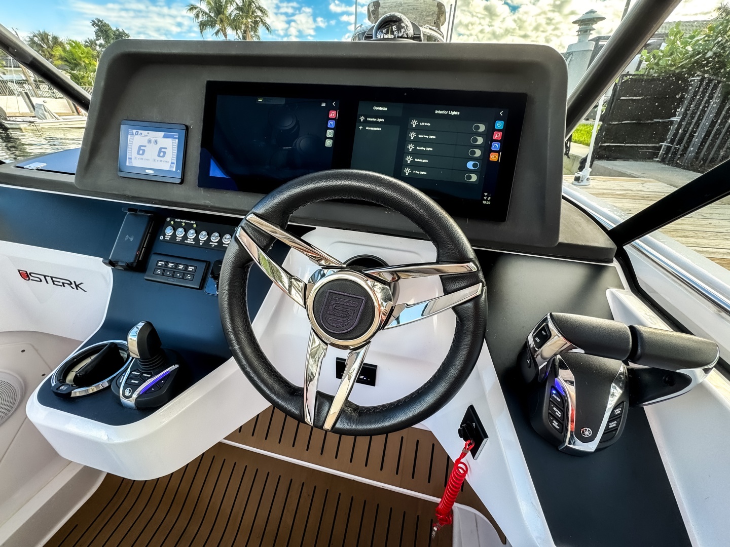 The progressive hull of every STERK is optimized for maximum speed and agile handling. Extensive CFD testing ensures safe, precise control. The double-stepped, deep-V hull with strategically placed spray rails increases lift and reduces spray. A new and unique feature is the hook rails at the stern, which, along with negative chines, provide superior grip, reduced heeling, and high cornering stability—a STERK signature.