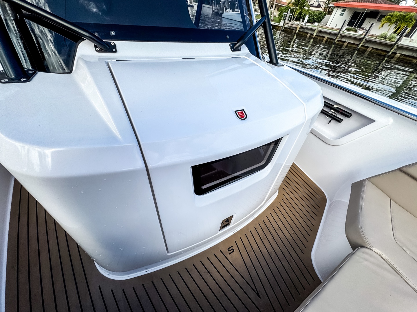 The driver’s position feels ergonomic, intuitive, and visually stunning. Sport Seats with flip-up bolsters and side support allow seated and standing helming. Angled dash designed for full visibility and glare reduction, even at high speed.