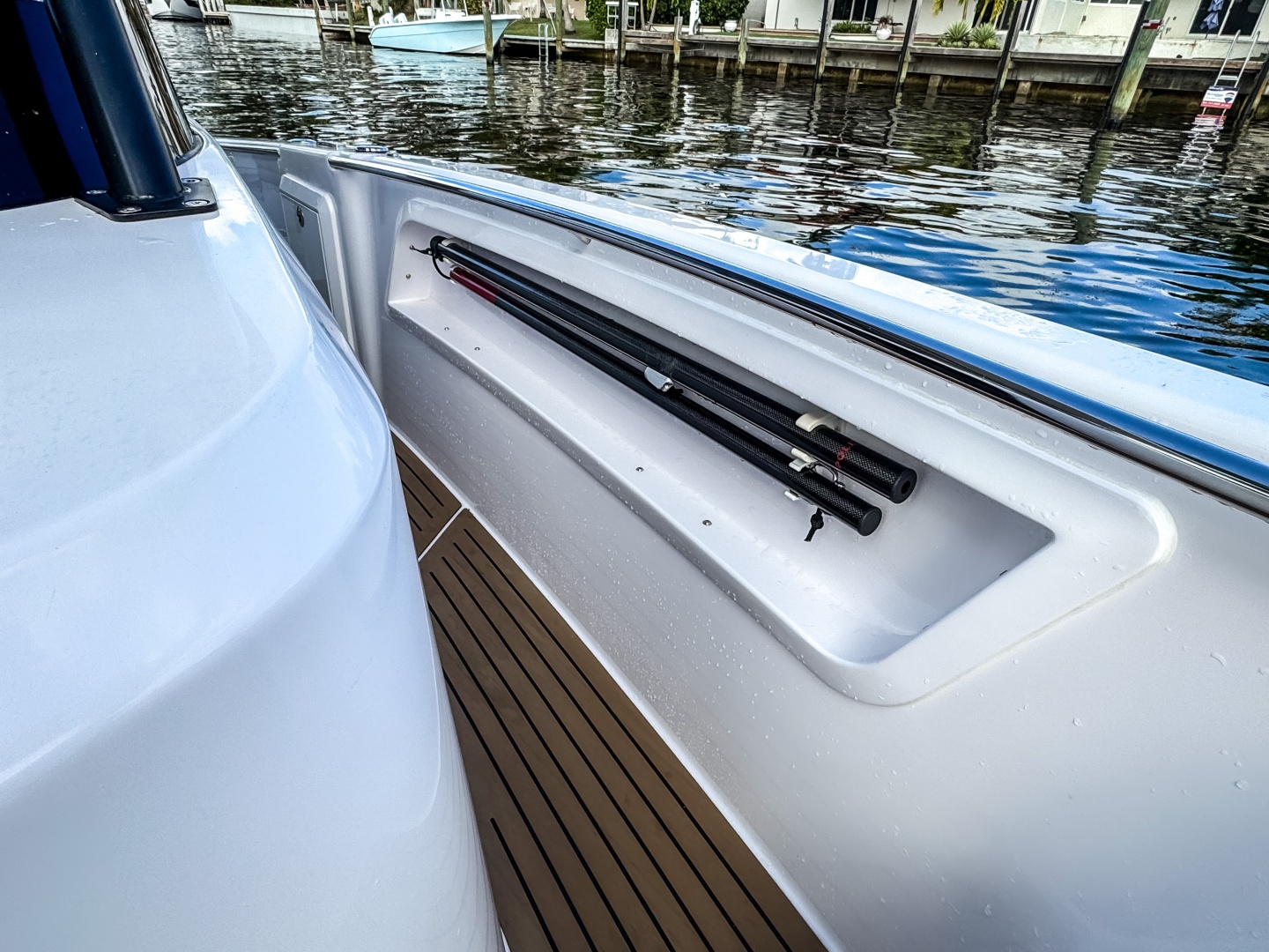 - Large aft platform and generous storage space in lockers under the bar and seating.