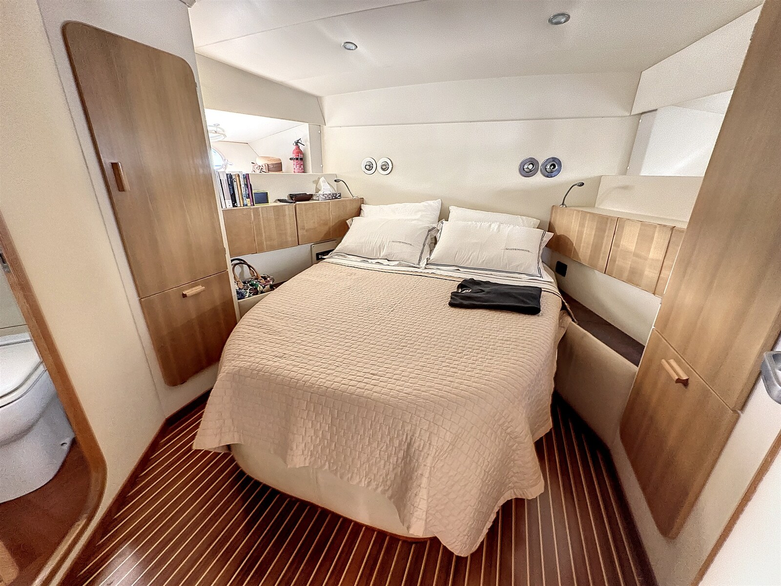 Aria condizionata (CONDARIA 2010), Boiler, Indicatore del serbatoio del carburante, Indicatore del Serbatoio dell’Acqua, Indicatore della pressione dell’olio nel motore, Indicatore della temperatura del motore, Pavimento interno in legno (2010), Prese interne 12v, Prese interne 220v, Riscaldamento (CONDARIA 2010), Telecamera, Voltmetro, WC marino elettrico.