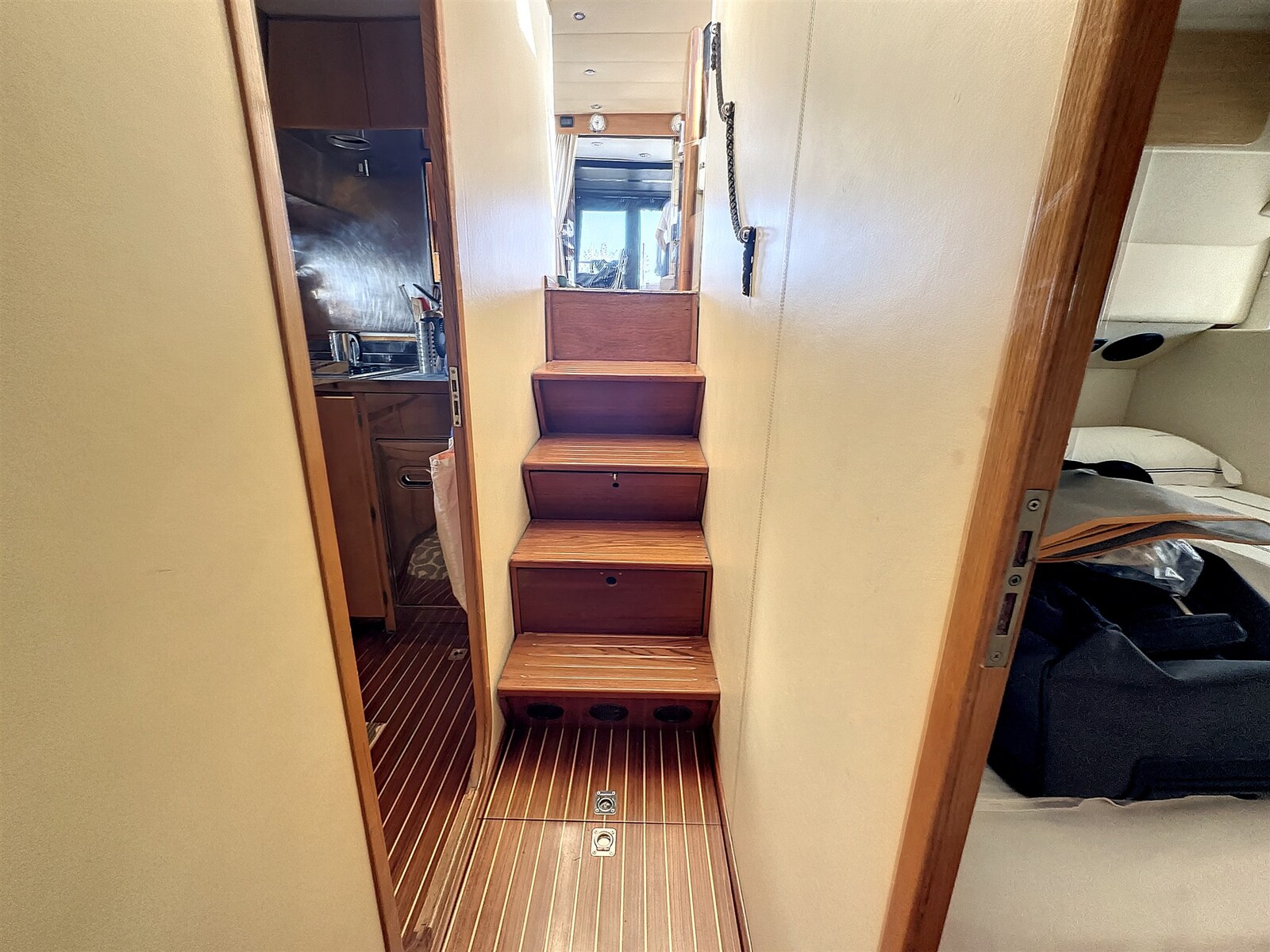 Motor Alarm, Anker (DELTA 32 kg), Waterdruk systeem, Teak op gangboorden, Buitendouche, Verstelbaar zoeklicht, Hydraulische trimflappen, Kraan voor bijboot, Brandblussysteem (2025), Bijboot buitenboordmotor (TOHATSU 15 HP 2025), Stootwillen, Loopplank (HYDRAULIC GANDOLA 2016), Platform (2010), Automatische bilgepomp, Handmatige bilgepomp, Teak in kuip, Walaansluiting 230V, Gelijkrichter, Elektrische ankerlier (LEWMAR Falcon 1.700 W), Zwemtrap, Kuiptafel, Bijboot (ZODIAC YL 275 2025), Hoorn.