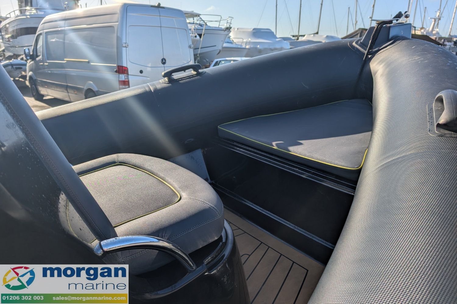 Deck: Black Hypalon tubes. GRP hull. Bow roller. A-frame with tow eye. Ribeye A600 full tailored mooring cover. Mooring cleats on A-frame and bow. Grab handles. Rope handles. Stainless steel fishing rod holder flush mounted. Bathing platform with fold down boarding ladder. Anchor locker with anchor, chain and rope. Teak decking with console footplate. Self draining deck.