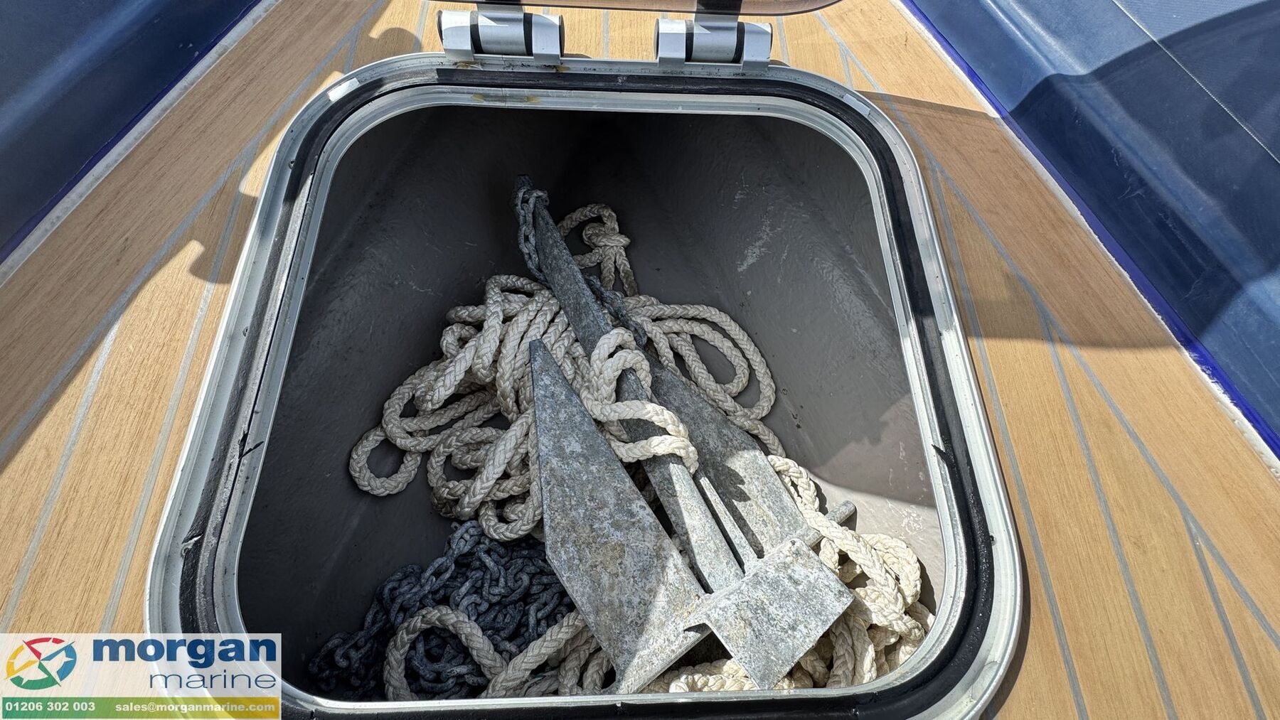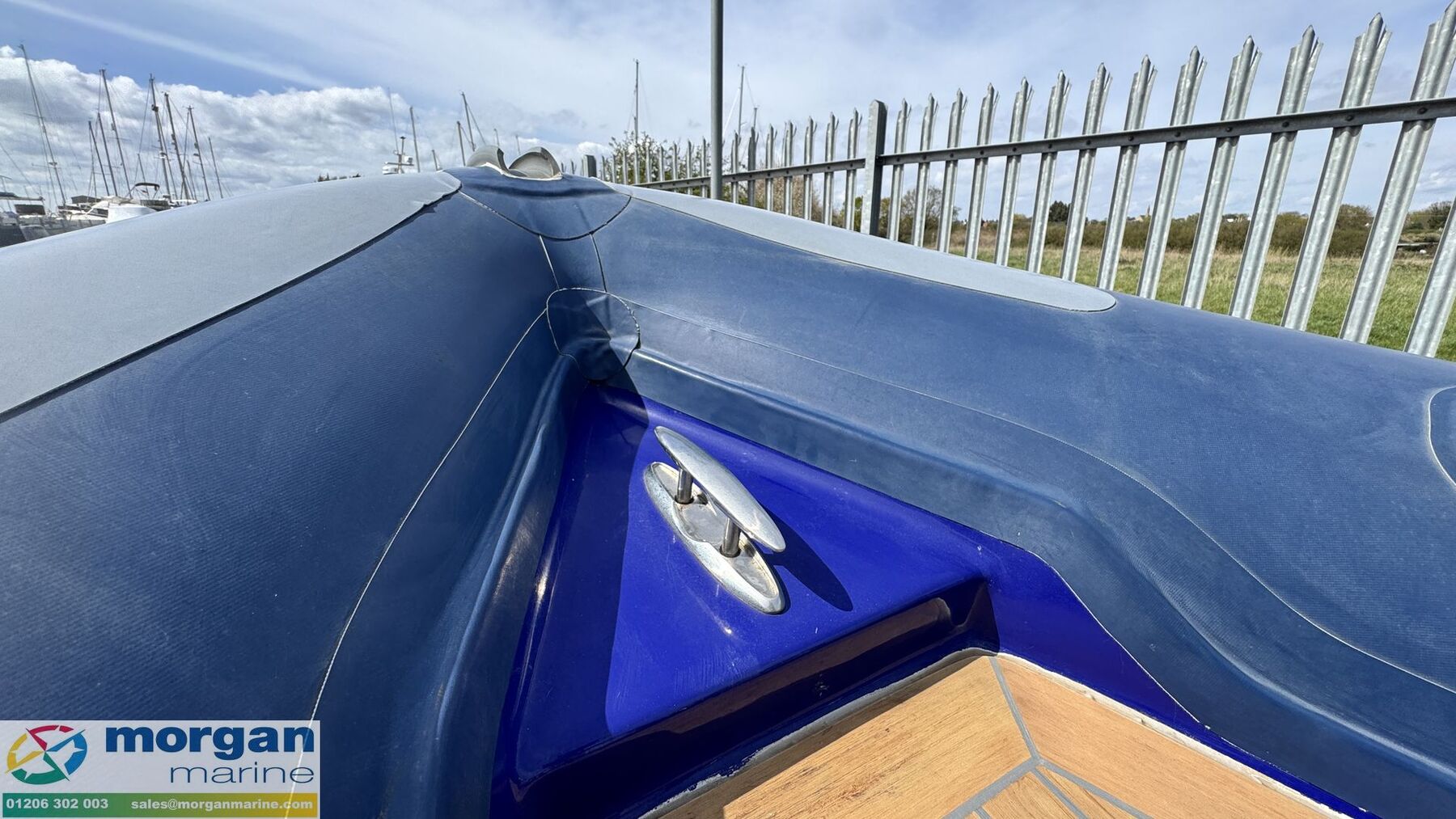 Deck: GRP deep V hull 24 degree dead rise. Rubbing strake. Hypalon heavy duty tubes. Overall cover in LG. Stainless Steel A-frame. Stainless Steel boarding swim ladder with bathing platform attached to A-frame. Moulded grab handles. Rope lifelines. EVA decking. Stainless Steel bow eye. Raised bow step including anchor locker.