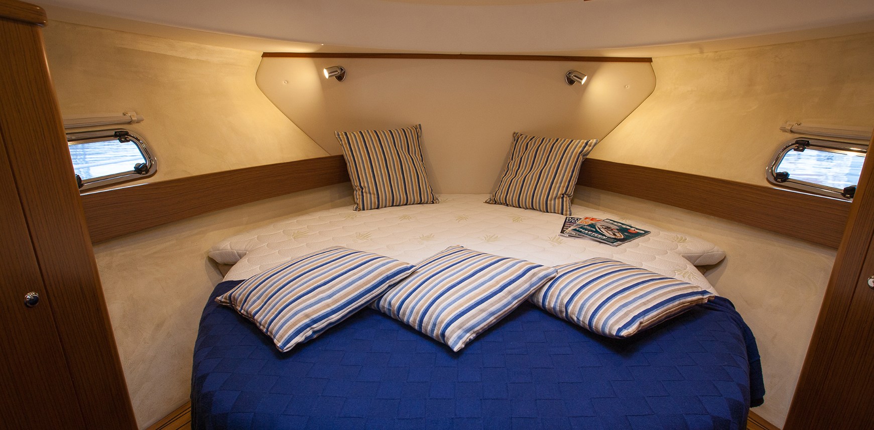Polster, Matratzen, Sonnenliegen (A prua), T-Top Persenning, Persenning für Fenster, Instrumenten Abdeckung, Sonnenpersenning (carbon look), Vorhänge.