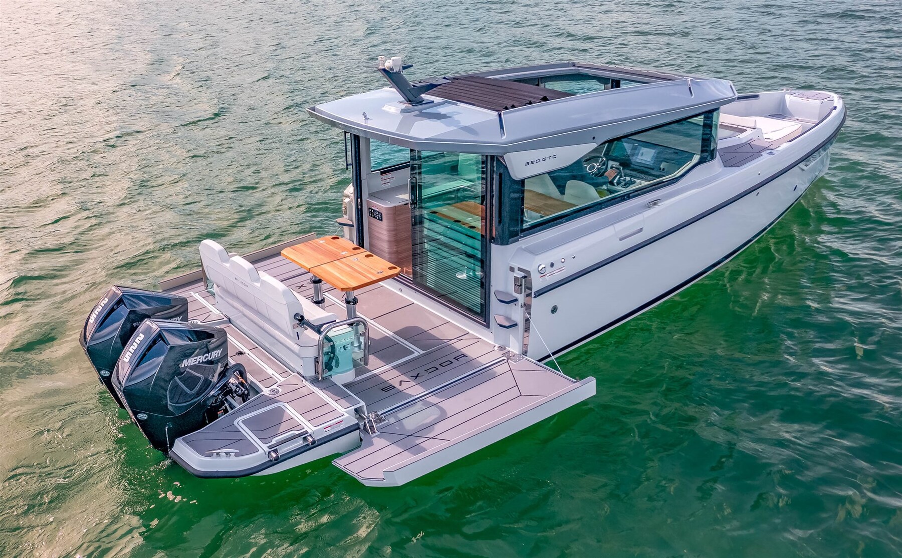 El Saxdor 320 GTC comparte el mismo diseño de casco refinado, eficiente y orientado al rendimiento que el modelo 320 GTO. Un centro de gravedad bajo, un peso reducido, una proa afilada y un casco de doble paso infundido al vacío crean una experiencia de conducción única en todo tipo de mares y condiciones climáticas, en todo el mundo. El Saxdor 320 GTC está disponible con tres opciones de tren motriz Mercury, que van desde 300 hp a 600 hp. Puede elegir la opción monomotor, o la opción bimotor con 2 x 225 CV o 2 x 300 CV, el verdadero "Grand Turismo del mar". El Saxdor 320 GTC redefine la experiencia de movimiento a bordo. Gracias a su concepto único de una espaciosa timonera de manga completa y fácil acceso a la proa, moverse en barco nunca ha sido tan fácil. Saxdor cree en el lujo del espacio no utilizado. Contáctenos para cada detalle.
