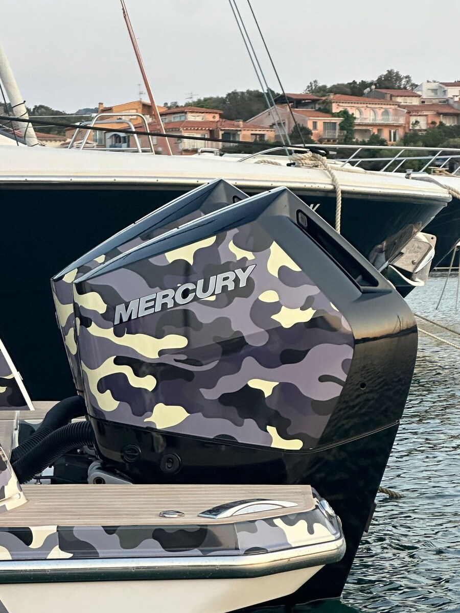 This Saxdor 400 GTO practically full specs, delivered to its first and only owner in the summer of 2025, best embodies all the characteristics that have made Saxdor a state-of-the-art shipyard. The folding bulwarks, almost four meters long, surprisingly expand the livability of the large aft living island, which can be easily transformed according to needs. Comfort, practicality and style are the key words of this unit, equipped with generator replacement, air conditioning, external BBQ, induction hob and double 51-litre external refrigerator. Weekends at sea become an uncompromising experience, completed by the stern and bow awnings and the power of the two 400 hp Mercurys, capable of pushing this queen of the sea up to 45 knots. Gelcoat in perfect condition, protected by camouflage wrap.