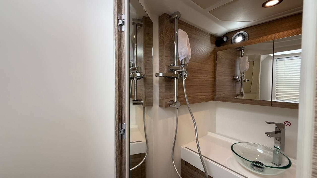 Acqua Calda, BBQ/ Grill (Esterno), Boiler (bivalente), Clima reversibile, Collegamento internet, Impianto acque nere, Indicatore del Serbatoio dell’Acqua, Indicatore del Serbatoio delle Acque Reflue, Prese interne 12v, Serbatoio Acque Nere, WC marino elettrico.