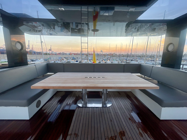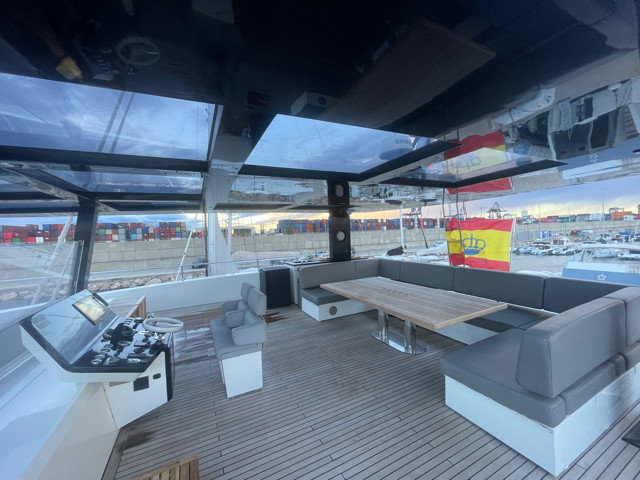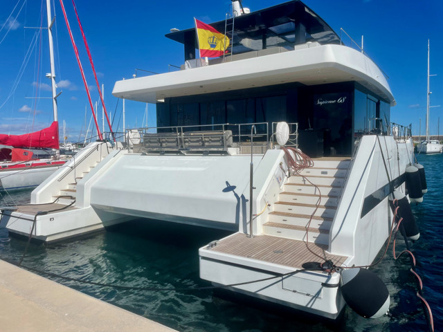 Disponible para visita únicamente con cita previa en una marina de la región de Valencia, este catamarán destaca por sus líneas contemporáneas y sus amplios espacios habitables. El concepto “Supreme” permite una conexión total entre interior y exterior, con un salón panorámico lleno de luz natural y múltiples zonas de relax pensadas para disfrutar.