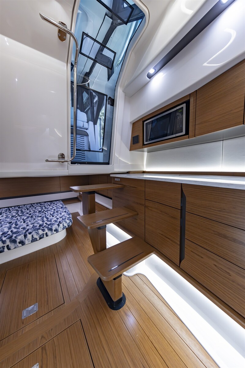 Diseñado con absoluta precisión, durabilidad duradera y comodidad pensada, el 46 LS está diseñado para llevarte no solo más lejos, sino también plenamente en esos momentos que recordarás incluso después de volver a estar en tierra. Tres módulos de cabina trasera distintos permiten al propietario personalizar la experiencia a bordo, ya sea para entretenimiento, aventura o pura relajación, realzada por una terraza en el lado de babor que abre el barco al mar. Las puertas correderas de cristal cierran la cabina ofreciendo protección contra los elementos, mientras que bajo cubierta hay un ambiente refinado y acogedor, con una cabina del propietario en la proa, una cabina de huéspedes a mitad del barco y un baño totalmente equipado. La cocina cuidadosamente diseñada en la cabina central, junto con los amplios espacios de preparación y la despensa bajo cubierta, crean un entorno funcional y libre de estrés para la hospitalidad a bordo. Contáctanos para cada detalle.