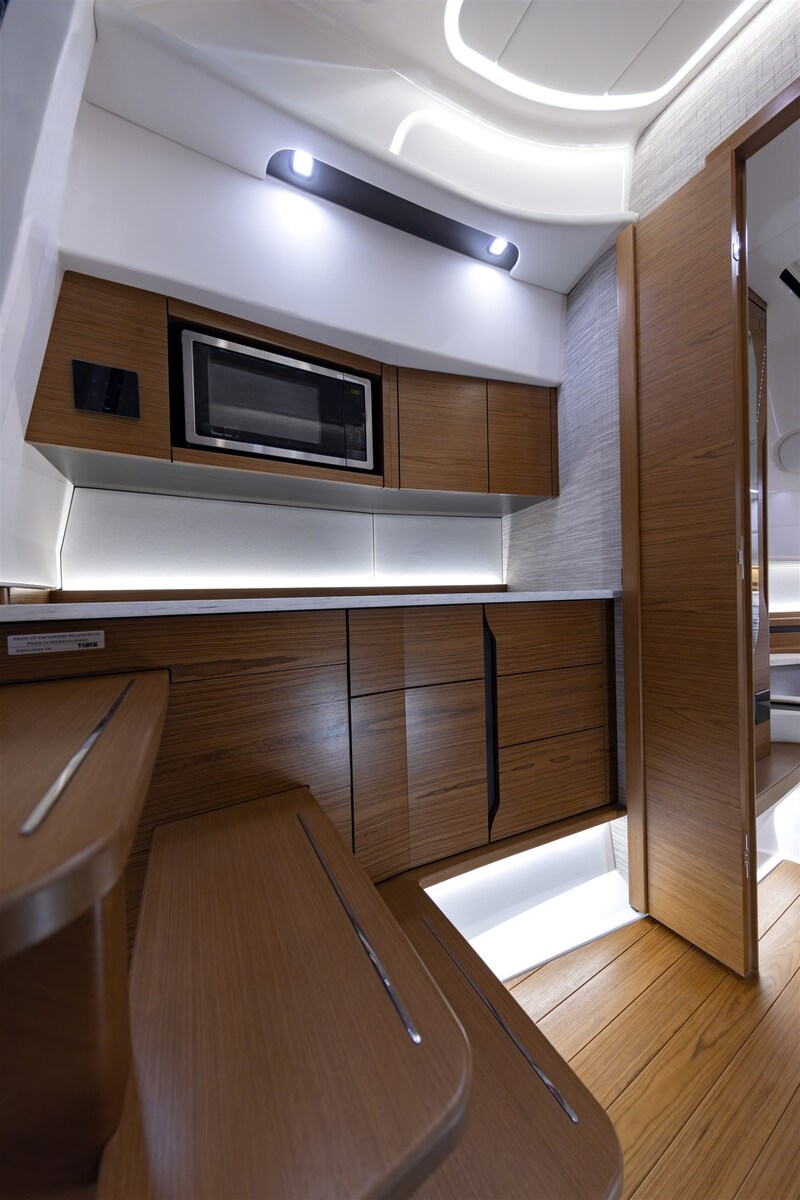 Designed with absolute precision, durable durability and thoughtful comfort, the 46 LS is designed to take you not only further, but fully into those moments you'll keep remembering even after you're back on the ground. Three distinct aft cockpit modules allow the owner to customize the experience on board, whether for entertainment, adventure or pure relaxation, enhanced by a terrace on the port side that opens the boat to the sea. Sliding glass doors close the cockpit offering protection from the elements, while below deck there is a refined and welcoming environment, with an owner's cabin in the bow, a guest cabin amidships and a fully equipped bathroom. The carefully designed galley in the central cockpit, together with the ample preparation spaces and pantry below deck, creates a functional and stress-free context for hospitality on board. Contact us for every detail.
