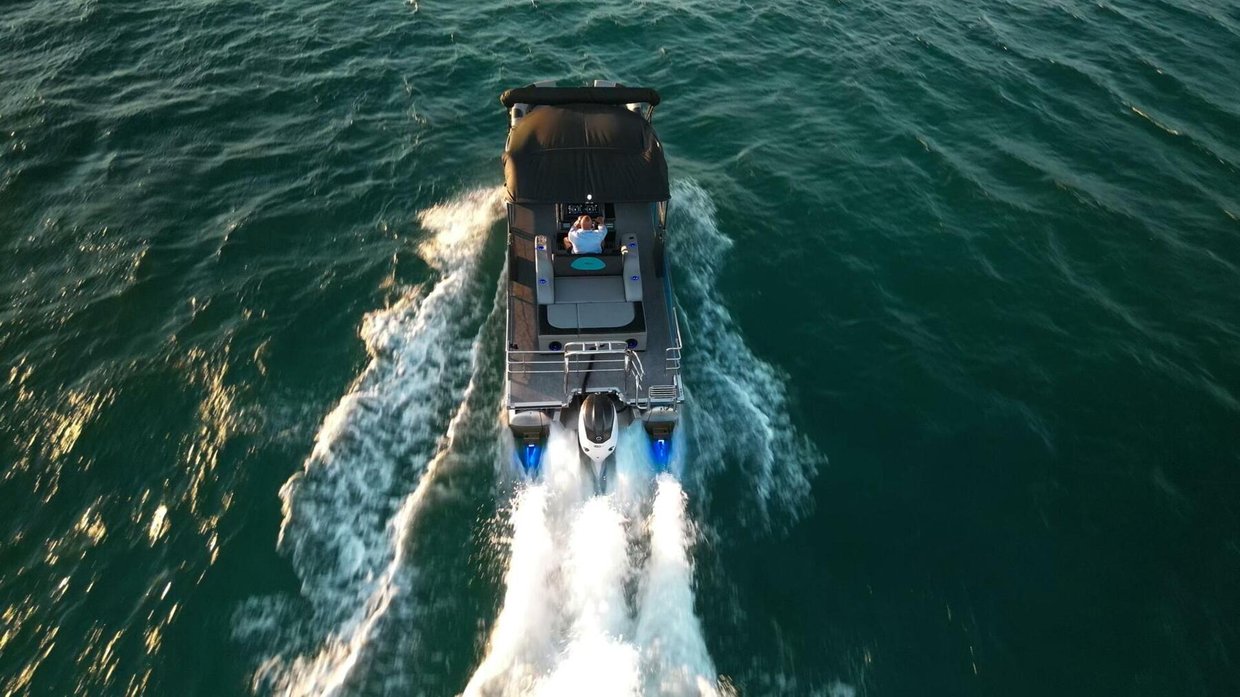 Its almost noiseless ride and cutting-edge technology set a new standard in electric pontoons.